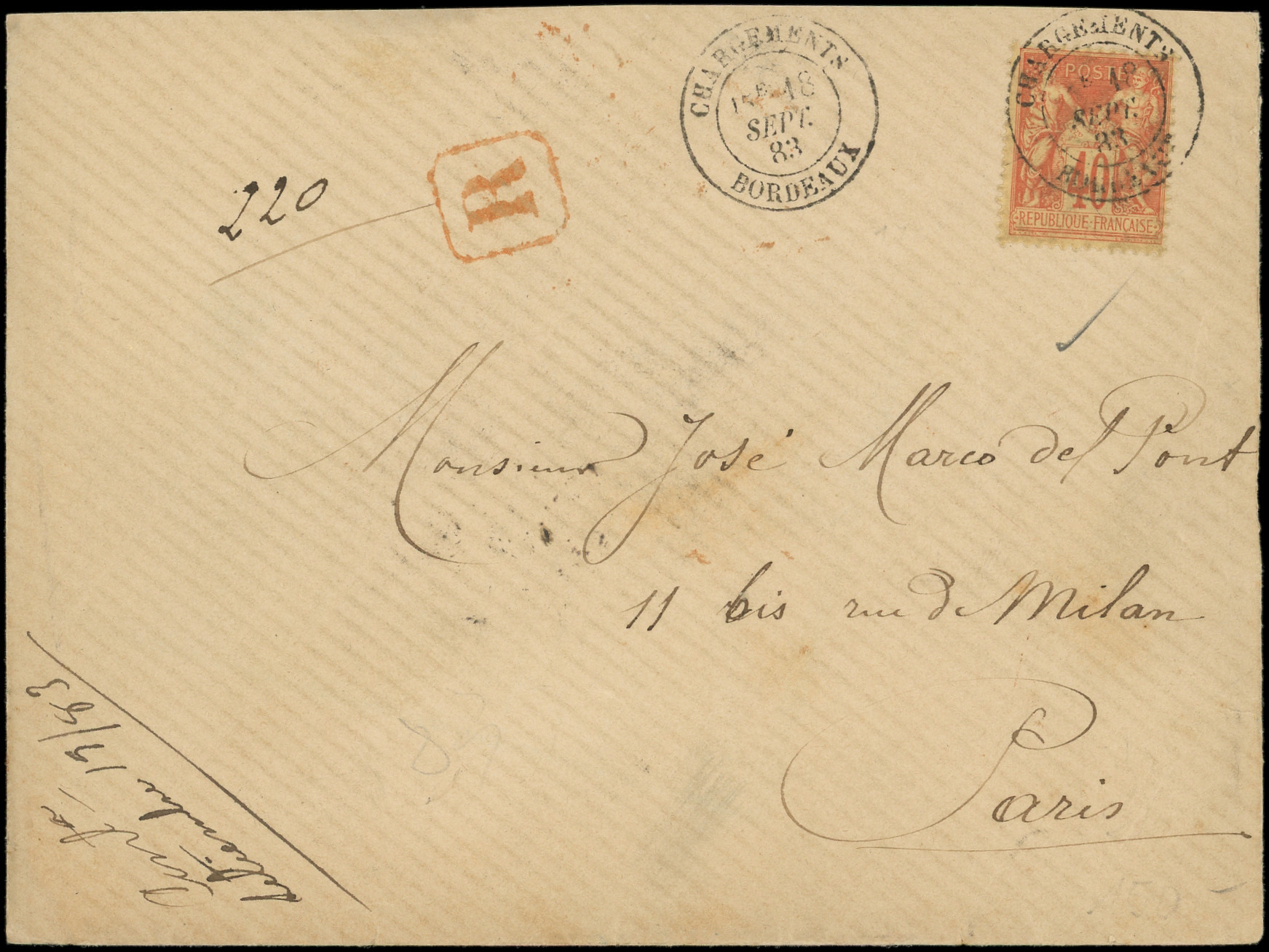rouge-orange, obl. càd CHARGEMENTS/BORDEAUX 18/9/83 s. Env. Rec., TB (Image)