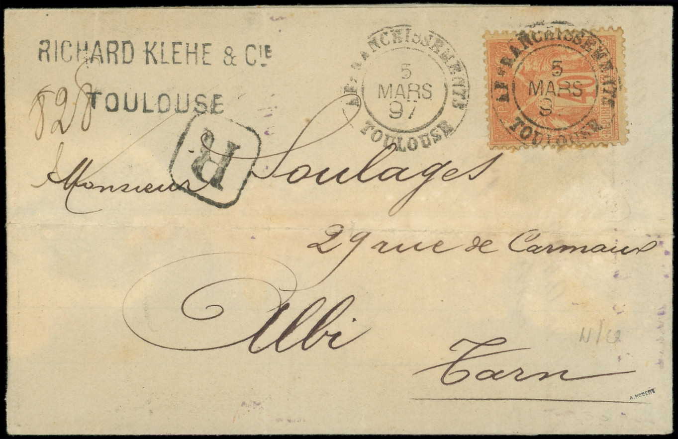 rouge-orange, obl. càd Hexag. TOULOUSE A 28/3/00 s. Env. Rec., TB (Image)