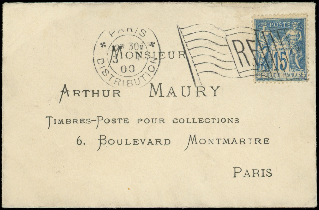 obl. Drapeau RF PARIS/DISTRIBUTION 30/( )/00 s. Env., TTB (Image)