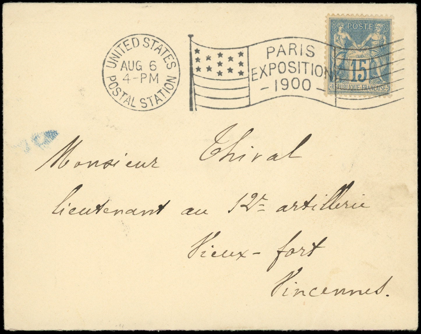 obl. UNITED STATES/POSTAL STATION 6/8 PARIS EXPOSITION 1900 s. Env., TB (Image)