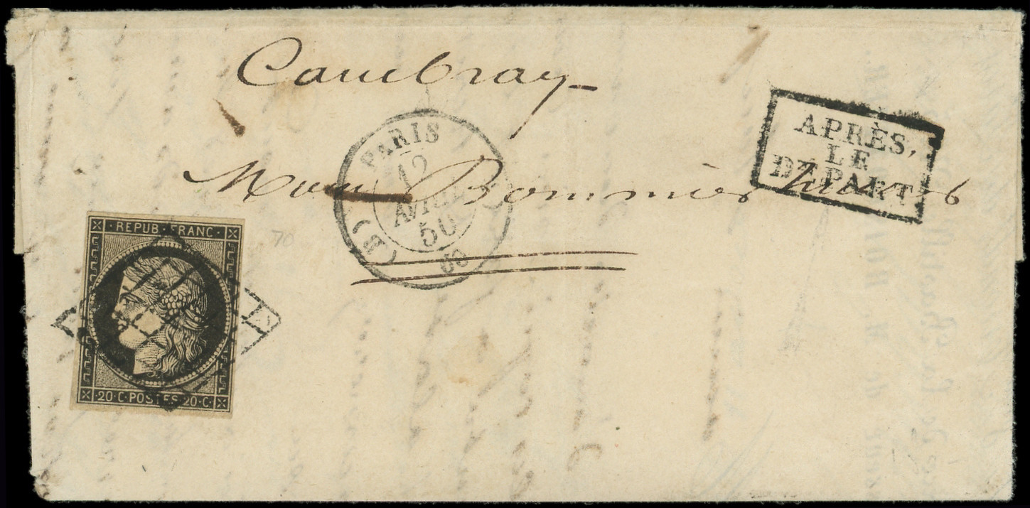 jaune, obl. GRILLE s. LAC, càd PARIS 12/4/50 et griffe APRES LE DEPART, très bonne combinaison et TTB (Image)