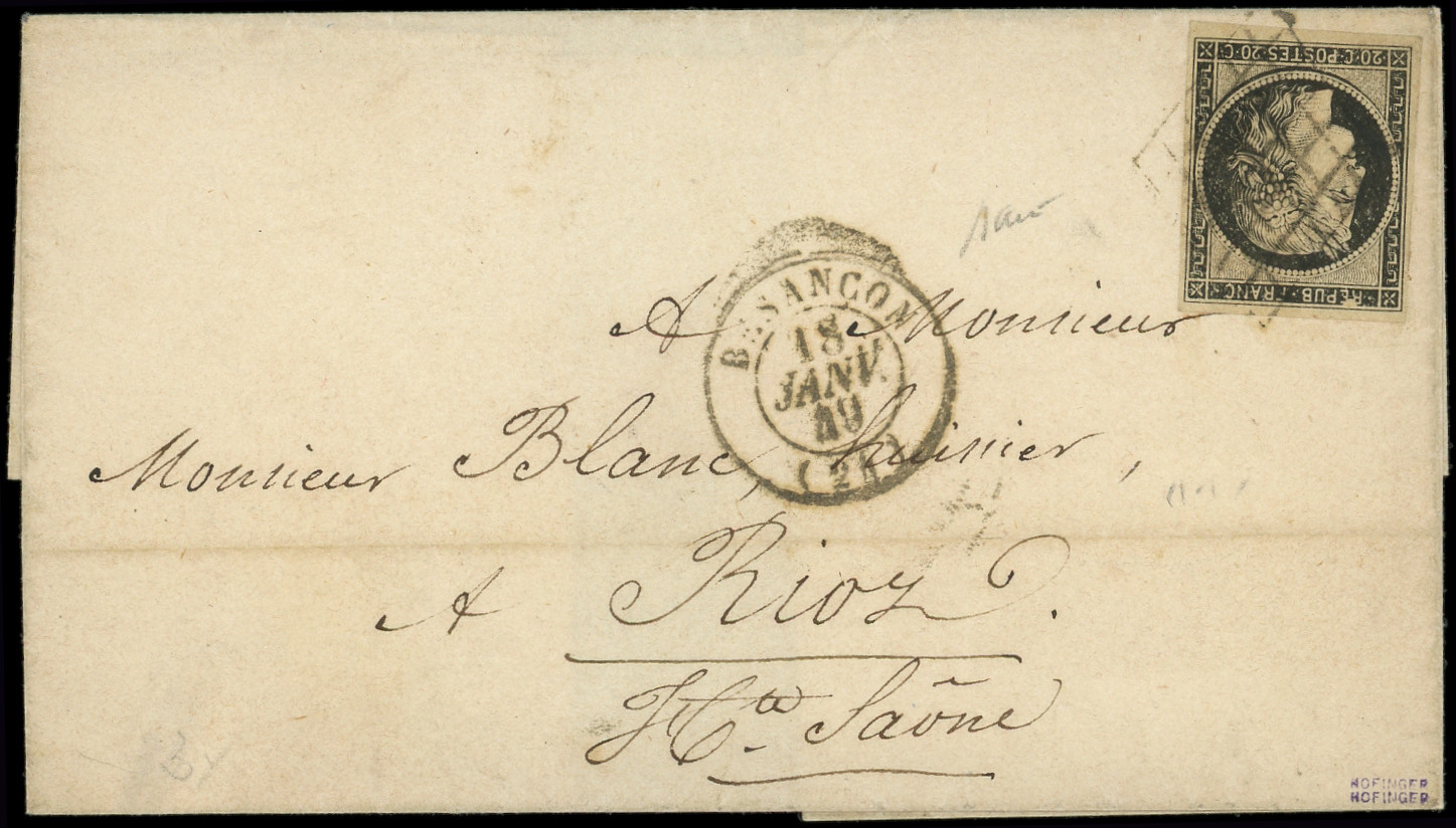 jaune, obl. GRILLE s. LSC, càd T15 BESANCON 18 JANV 49, 4e jour d'utilisation de la grille dans cette ville, TTB (Image)