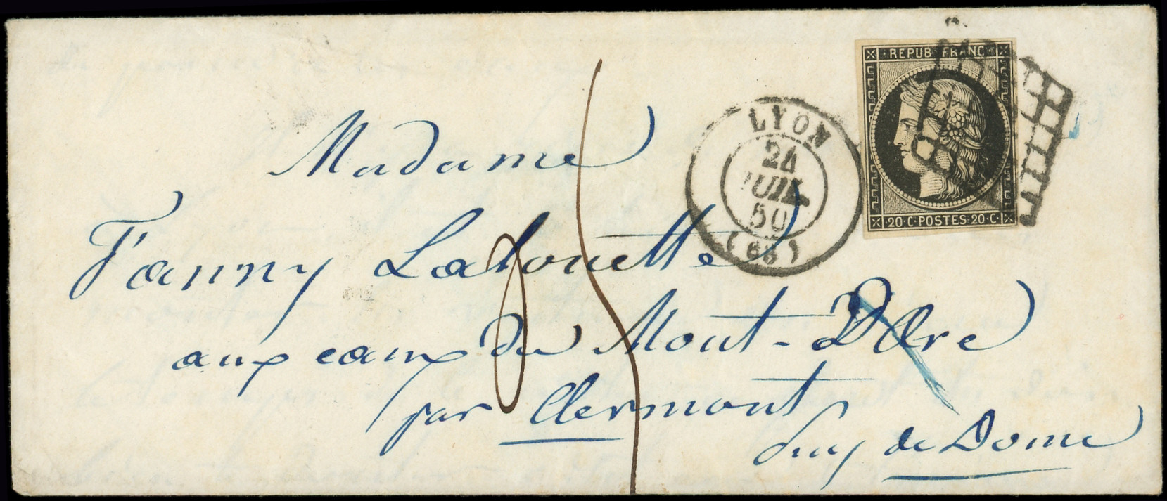 jaune, obl. GRILLE s. LAC, càd T15 LYON 24/7/50, TAXE 05 égale à l'insuffisance pour application du nouveau tarif depuis le 1/7, Superbe (Image) (Image2)