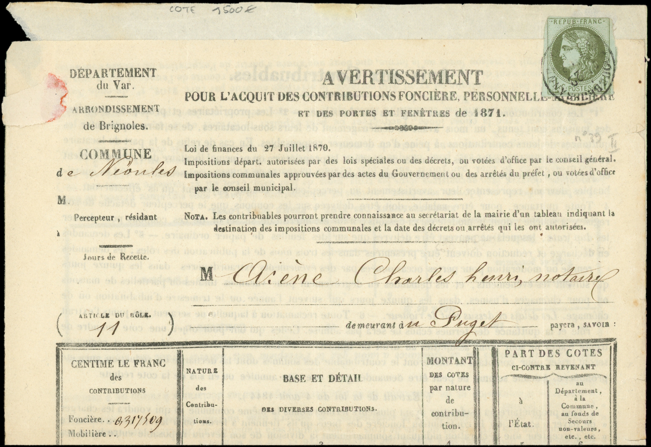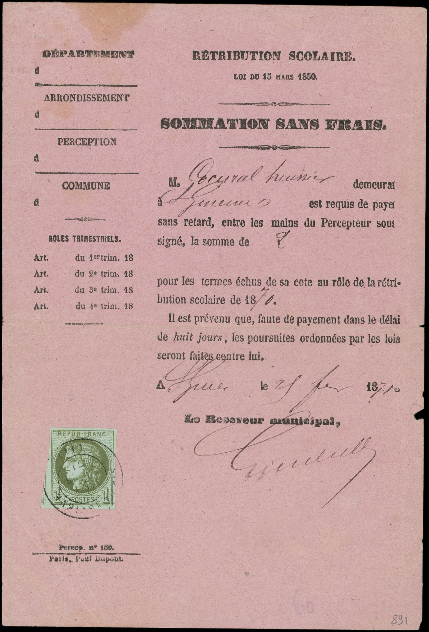 R III, obl. càd T17 Ste GENEVIEVE 24/2/71 seul s. Sommation sans Frais, RR et TTB, certif. Pothion, ex. collection Dubus (Image)