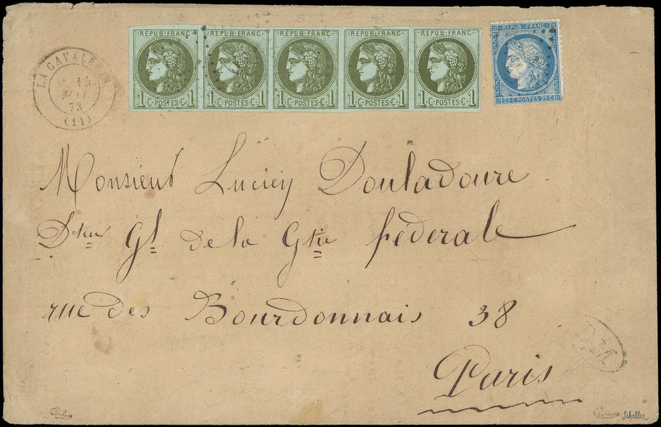 II, BANDE de 5 + N°60 obl. GC s. Env., càd T17 LA CAVALERIE 14/5/73 pour Paris, tarif Papiers d'Affaires N°4 jusqu'à 50g., RR et TTB et 4 certificats (Image) (Image2)