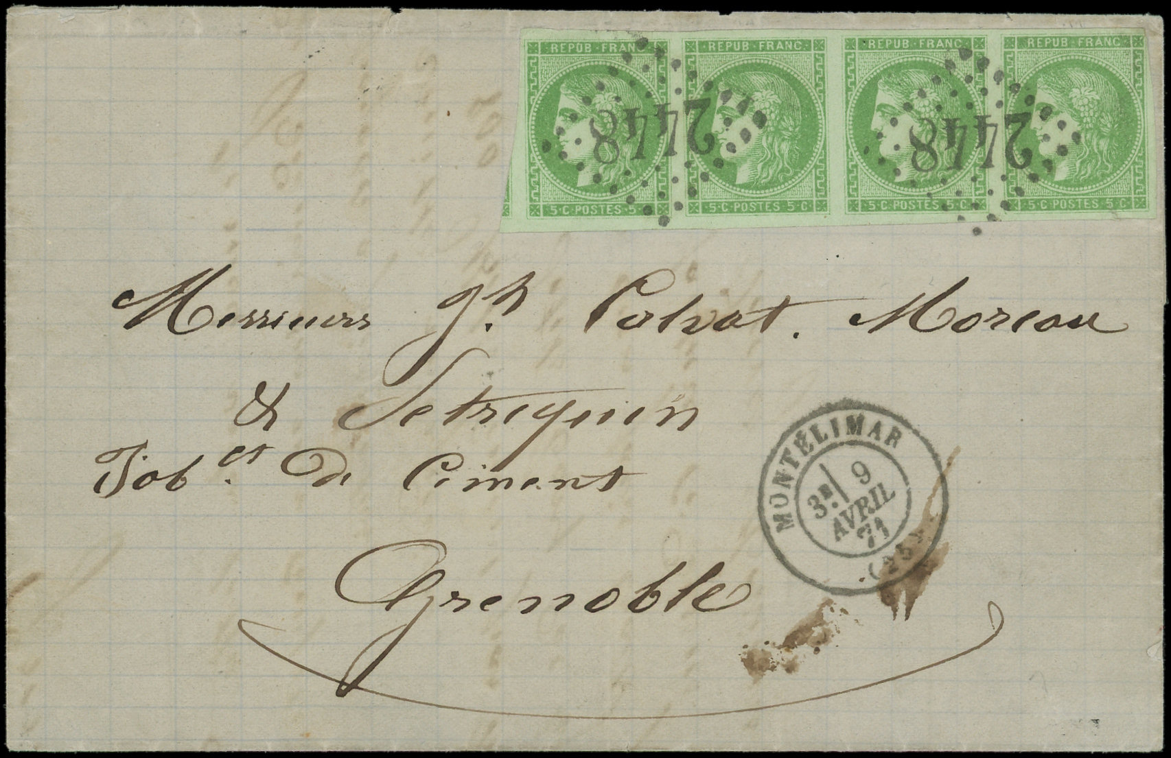 BANDE de 4, 4e t. inf. déf., obl. GC 2448 s. LAC, càd T17 MONTELIMAR 9/4/71, TTB (Image)