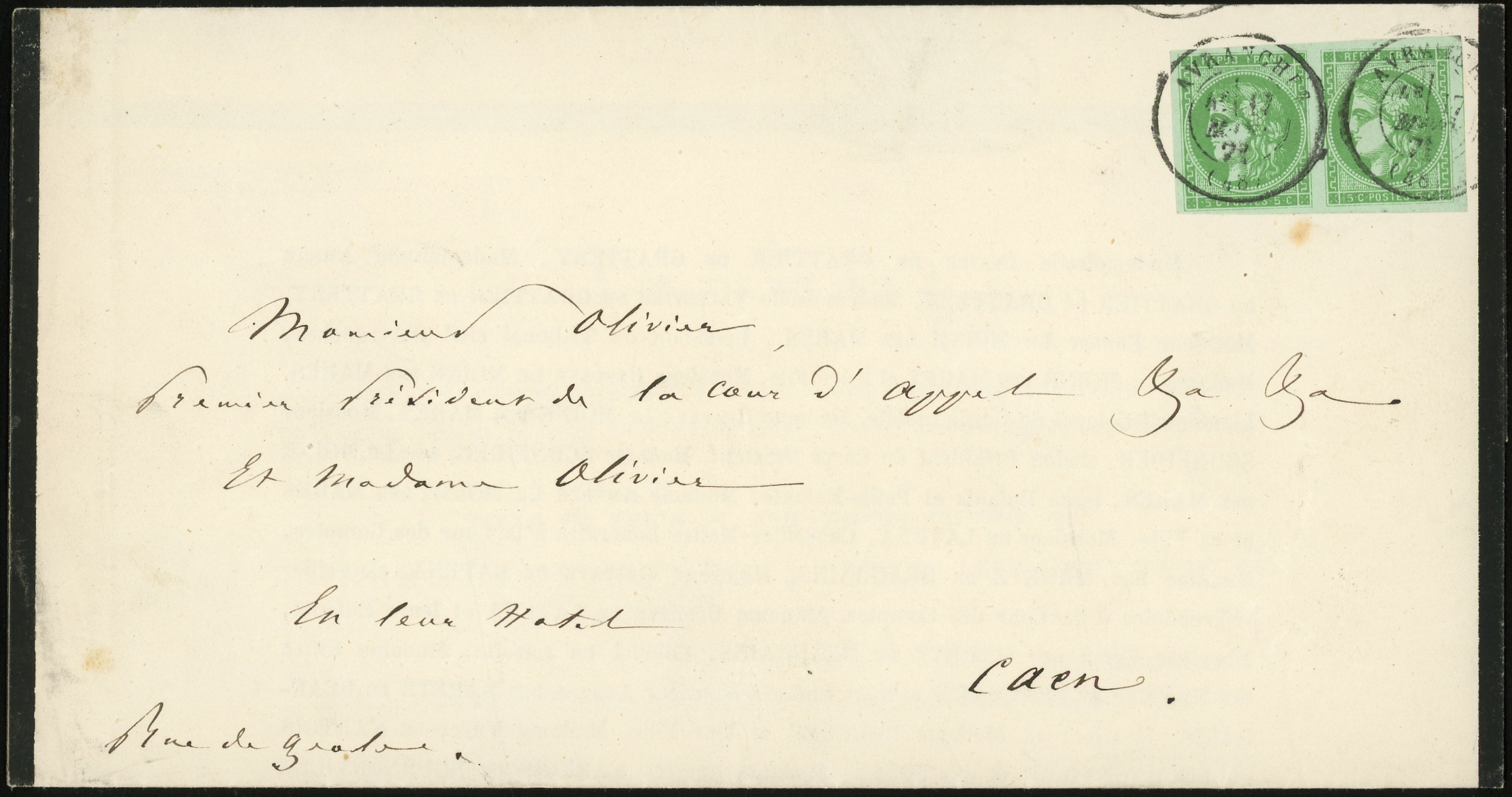 vert-jaune, R II, PAIRE très belles marges, obl. càd T17 AVRANCHES 17/3/71 s. Faire-part, Superbe (Image)
