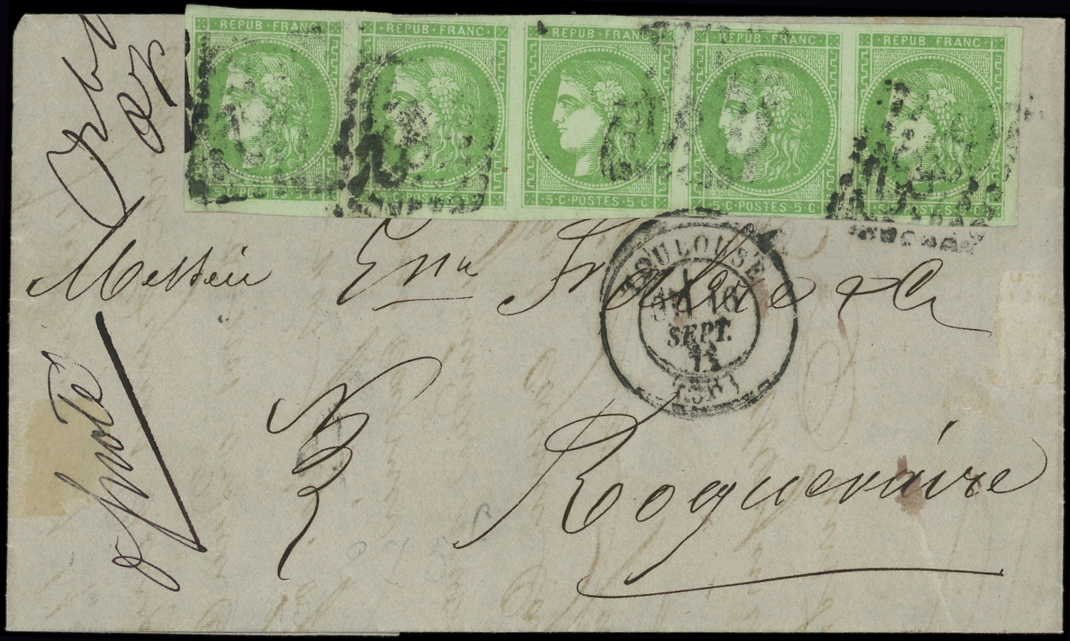II et 10c. R II, les 2 très bien margés, obl. GC 3982 s. Env., càd T17 TOULOUSE 17/10/71, RR affrt local tout en Bordeaux, TTB. J (Image) (Image2)