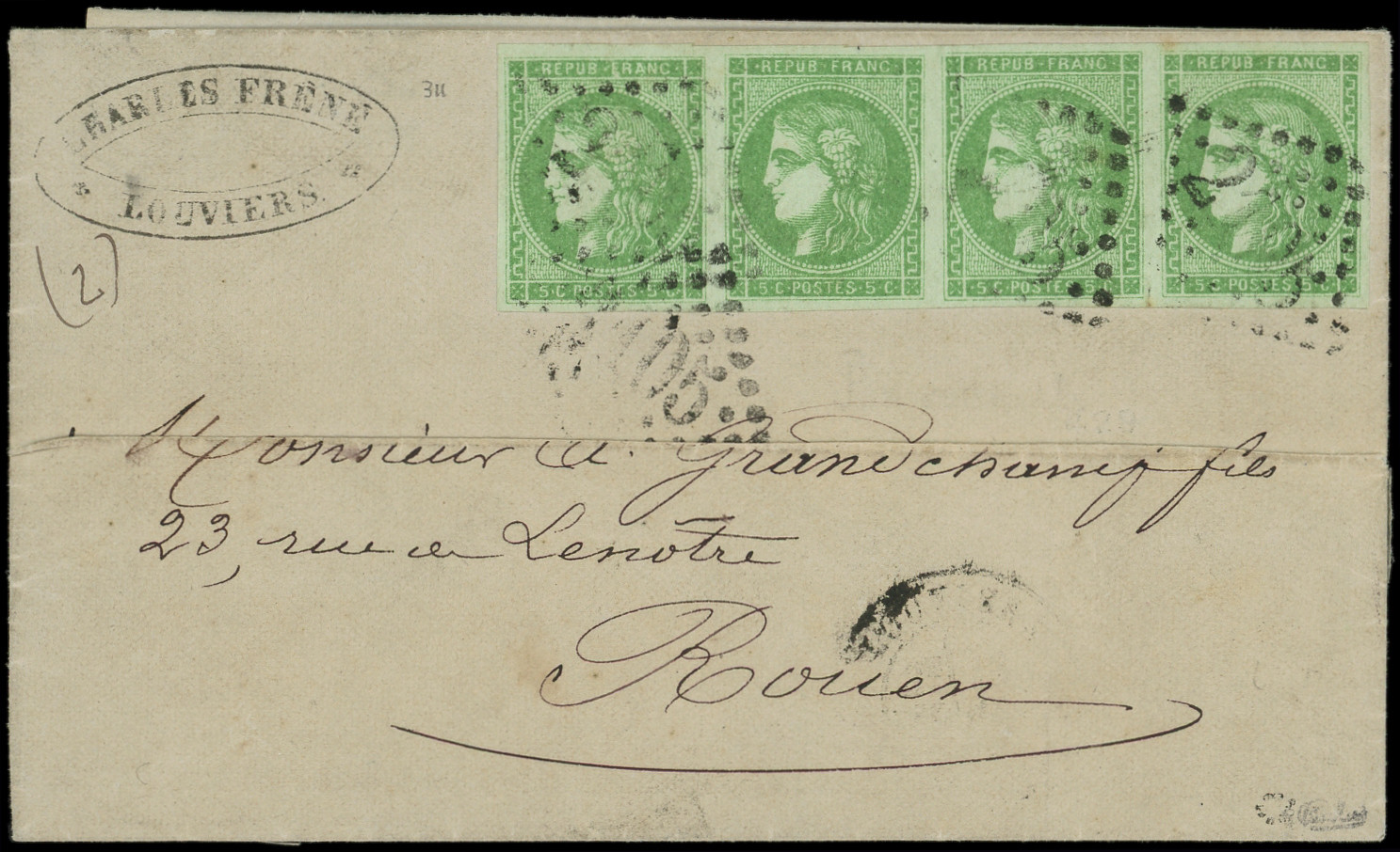 vert-jaune, R II, BANDE de 4 obl. GC 2105 s. LAC de LOUVIERS 17/3/71, arr. ROUEN, TTB. C (Image)