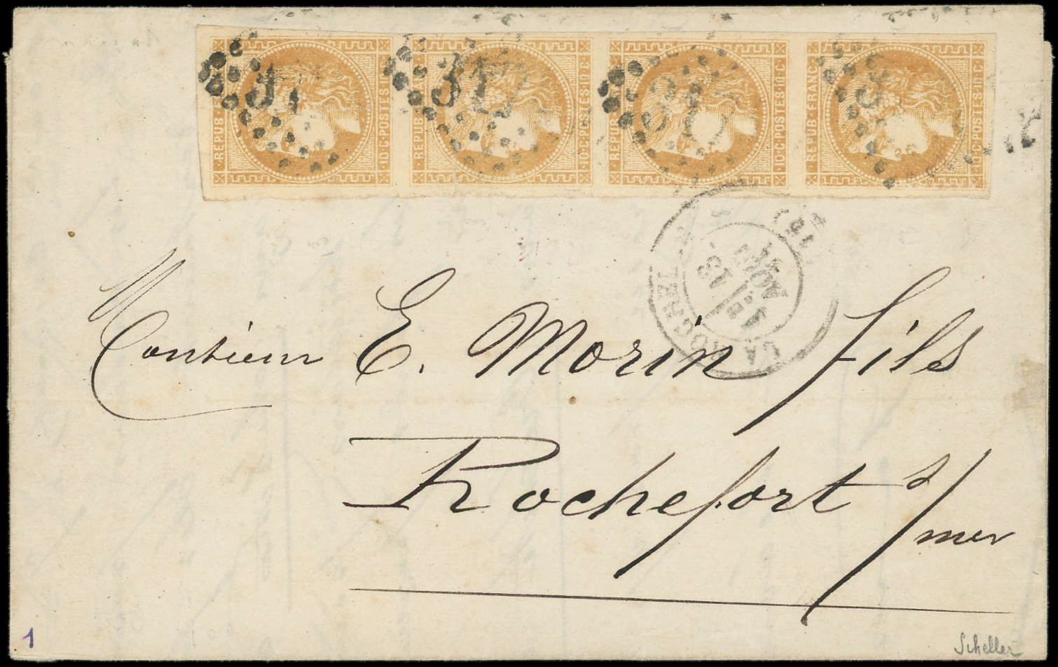 bistre-jaune, R II, BANDE de 4 obl. GC 3174 s. LAC, càd T17 LA ROCHELLE 13/8/71, TB. S (Image)