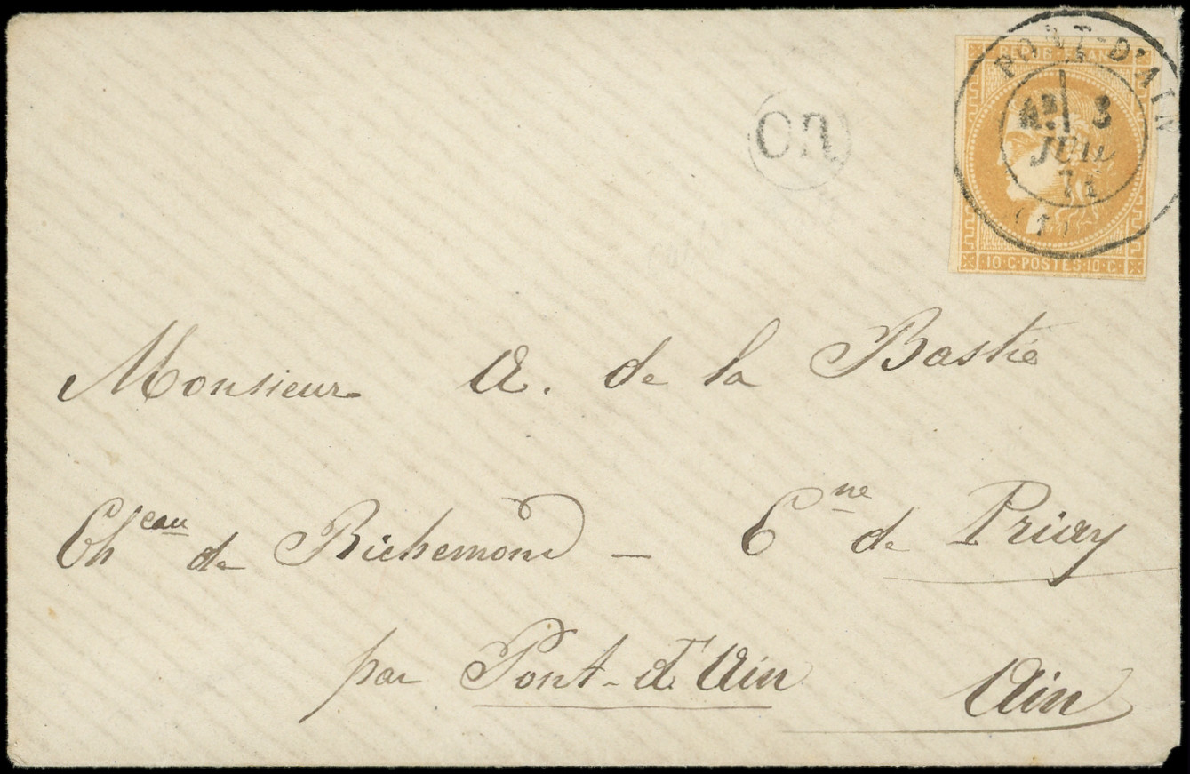 bistre-jaune, R II, obl. càd T17 PONT D'AIN 3/7/71 s. Env. locale avec OR, TB (Image)