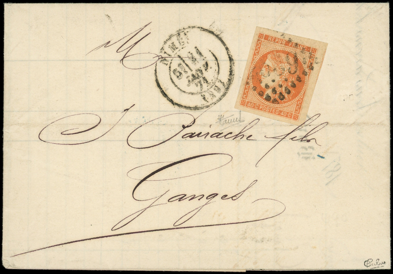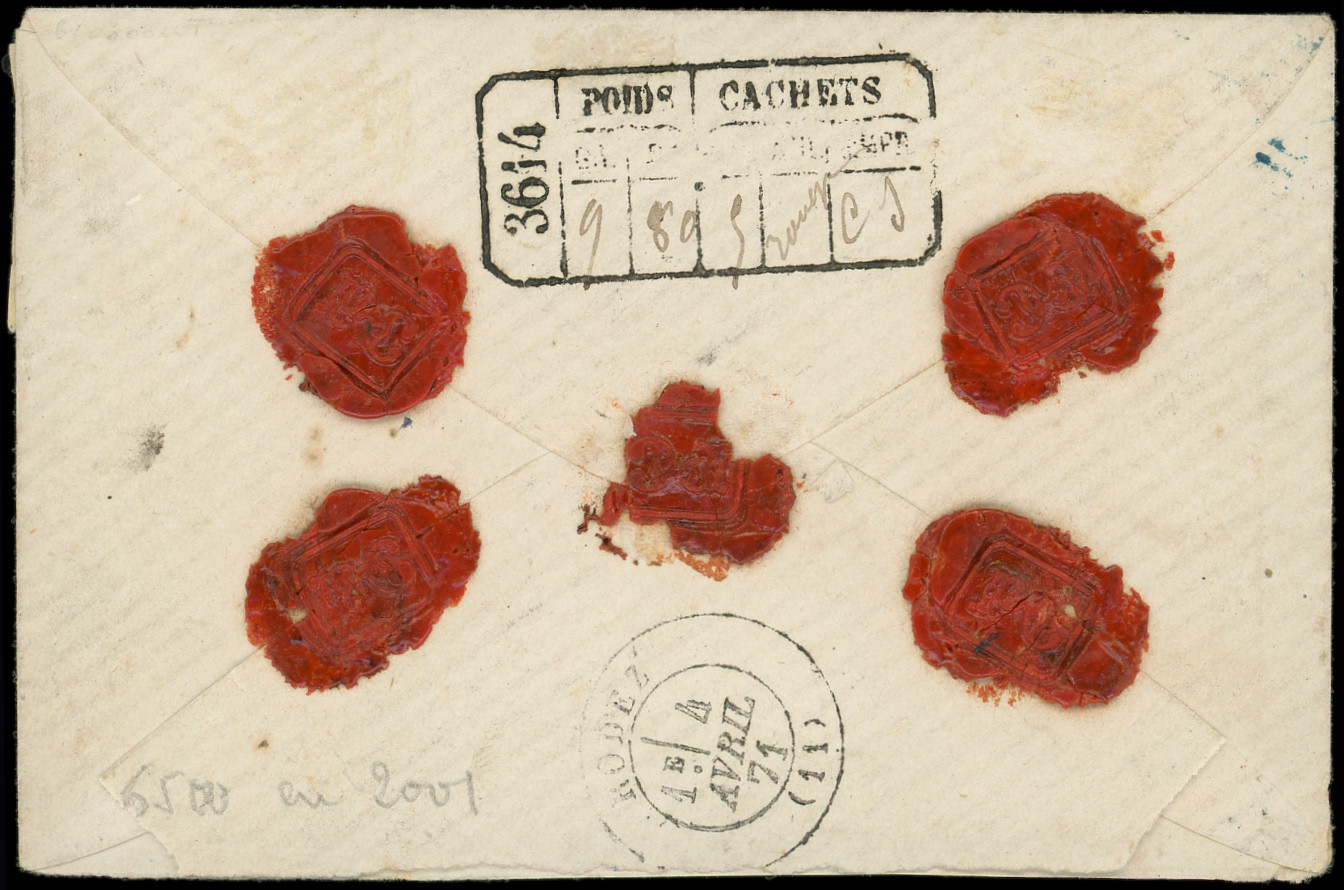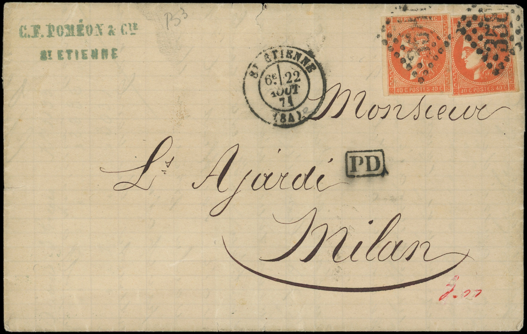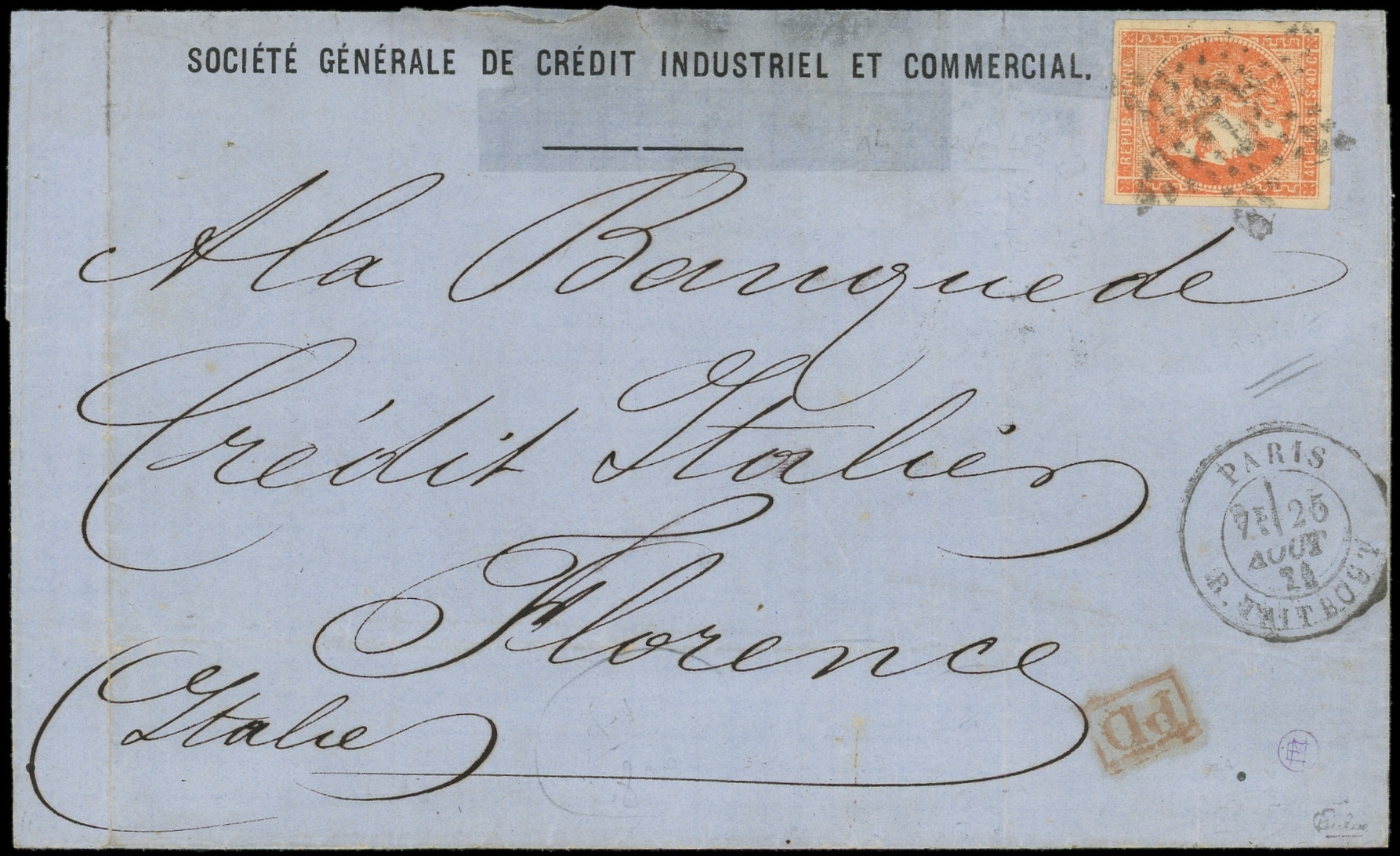 obl. ETOILE 22 s. LSC, càd R. Taitbout 25/8/71, arr. FIRENZE, Etoile chiffrée toujours RR s. Bordeaux, TTB. C (Image)