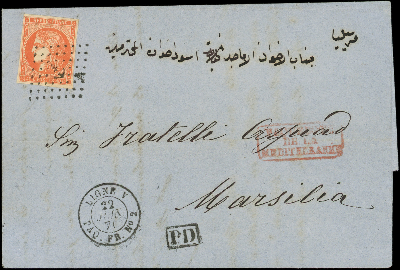 obl. ANCRE s. LAC d'ALEXANDRETTE, càd LIGNE V PAQ. FR. N°2 22/6/71, arr. MARSEILLE, Superbe (Image)