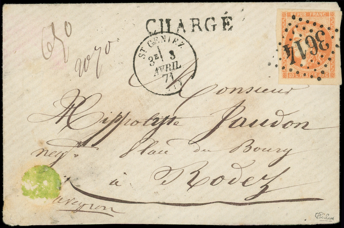 obl. GC 3614 s. Env. CHARGE, càd T16 St GENIEZ 3/4/71, Superbe. C (Image)