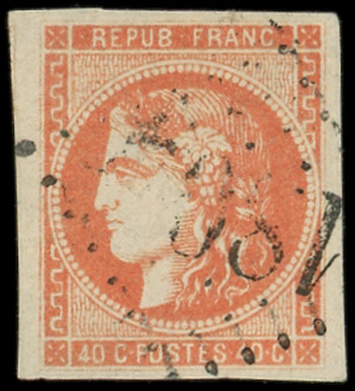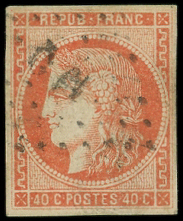 VERMILLON, obl. Amb., nuance certifiée JF Brun, TB (Image)