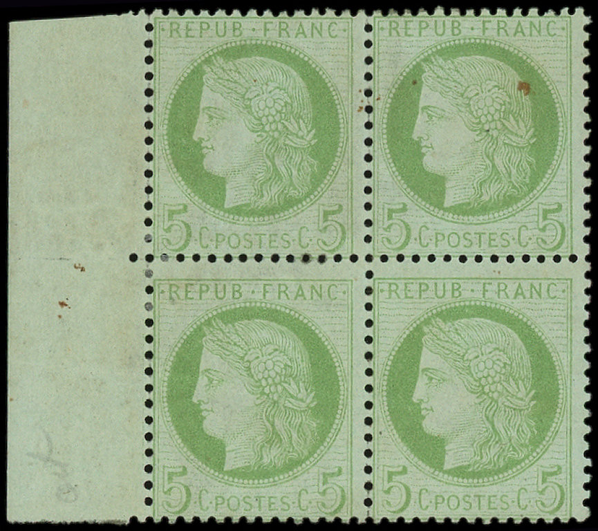 vert-jaune sur azuré, BLOC de 4 bdf, gomme mate, paille s. 1 ex., B/TB (Image)