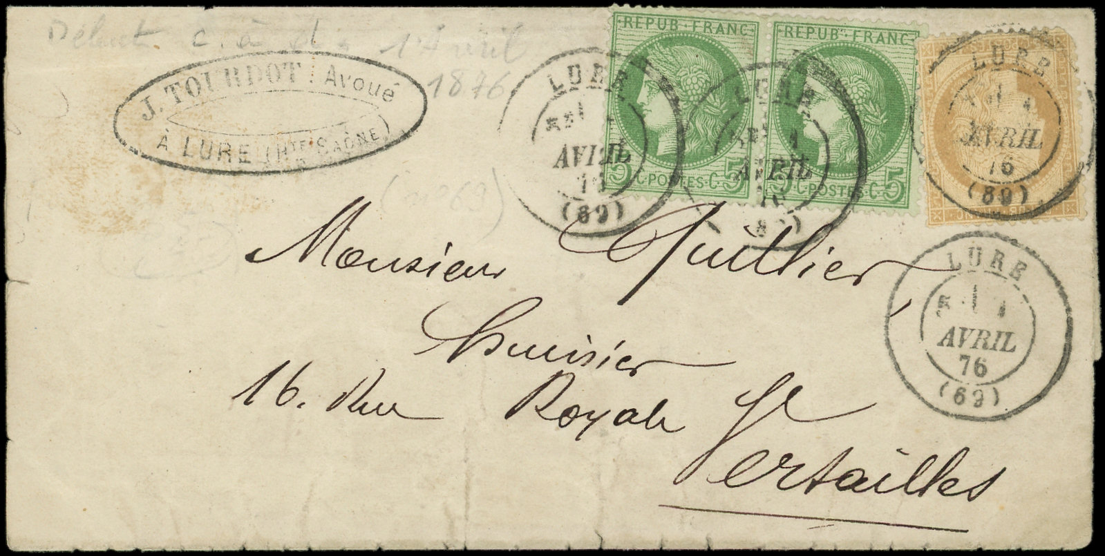 PAIRE et 15c. obl. càd T17 LURE 1/4/76 s. LSC, PREMIER JOUR du cachet à date SUR les timbres, TB (Image)