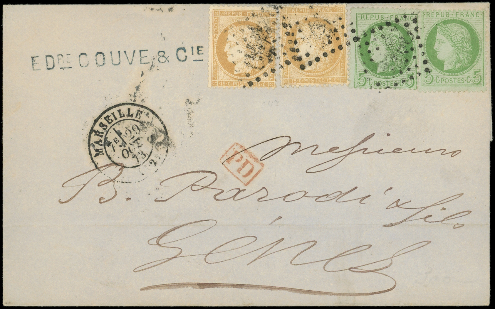 nuances) et 15c. obl. GC 2240 s. LSC, càd MARSEILLE 20/10/73, arr. GENOVA 21/10, TB (Image)