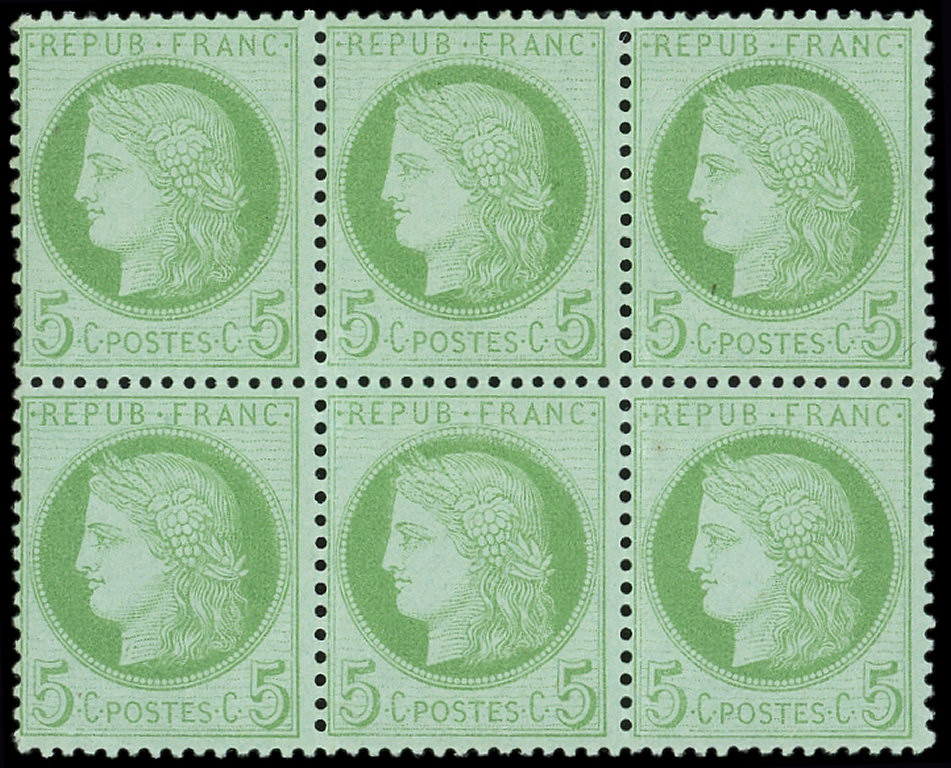 vert-jaune sur azuré, BLOC de 6 très bien centré, TTB. C, cote * (Image)