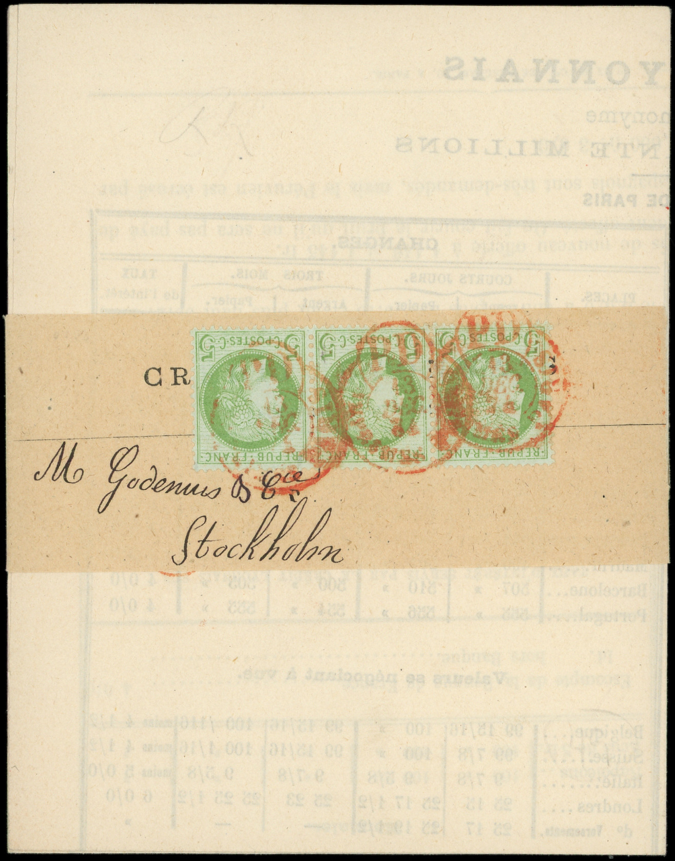 BANDE de 3 obl. càd rouge des Imprimés PD 13/12/74 s. circulaire complète sous bande du Crédit Lyonnais pour STOLKHOM, Superbe (Image)