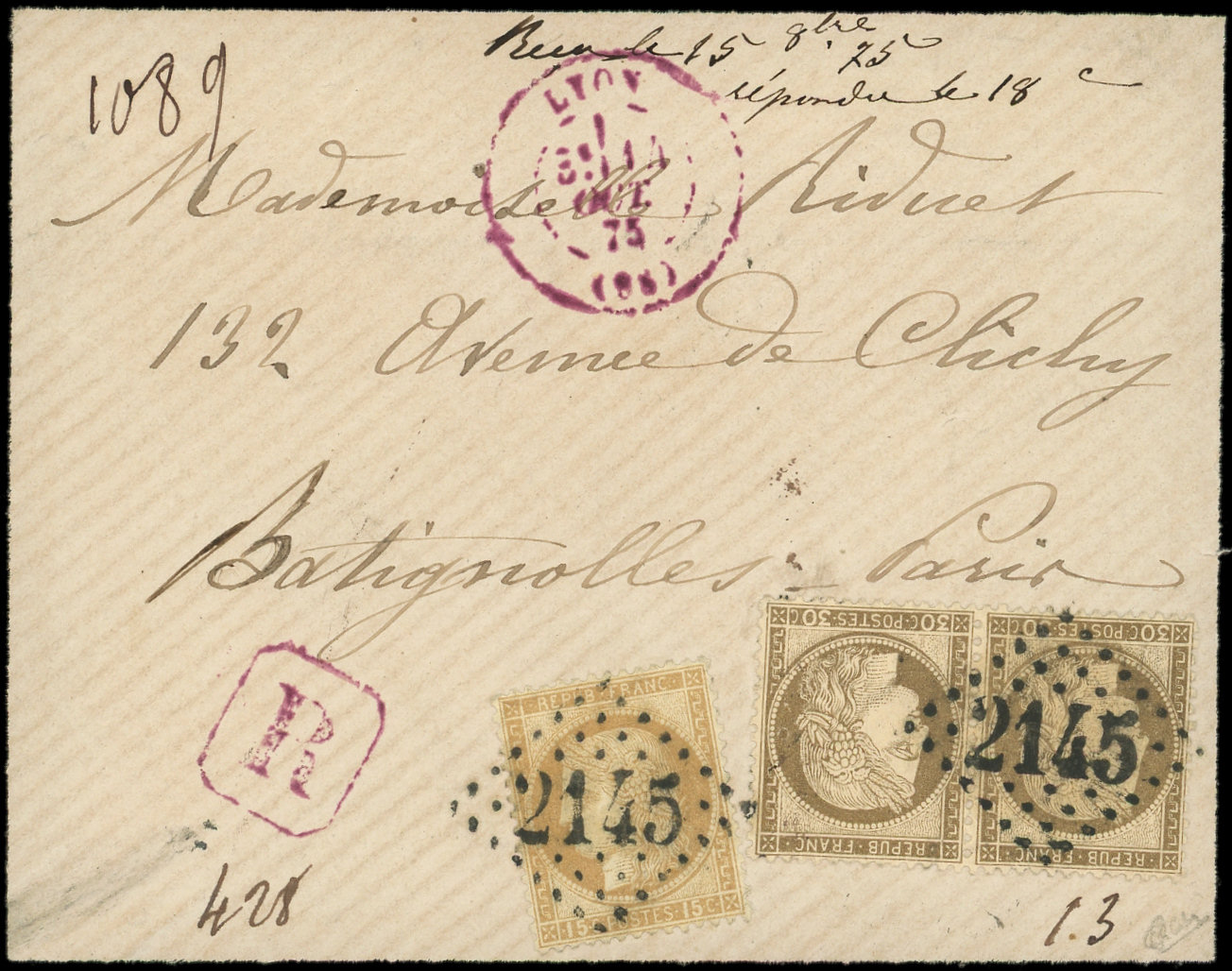 obl. GC 2145 s. Env. Rec., càd T17 LYON 14/10/75 en VIOLET, TB. C (Image)