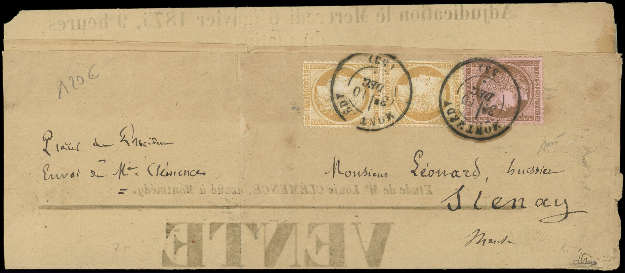 PAIRE et 10c. obl. càd T17 MONTMEDY 10/12/(74) s. affiche de Vente par suite de Saisie Immobilière avec Timbre de Dimension 5c., TB. J (Image)