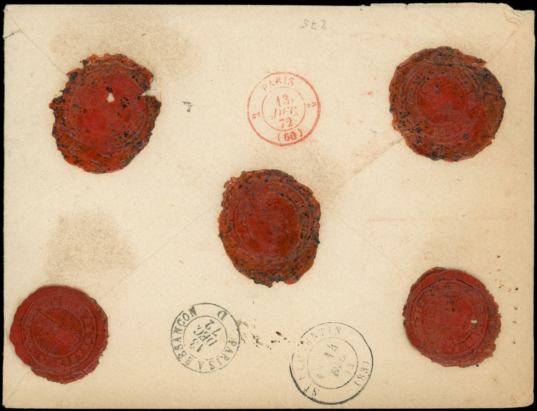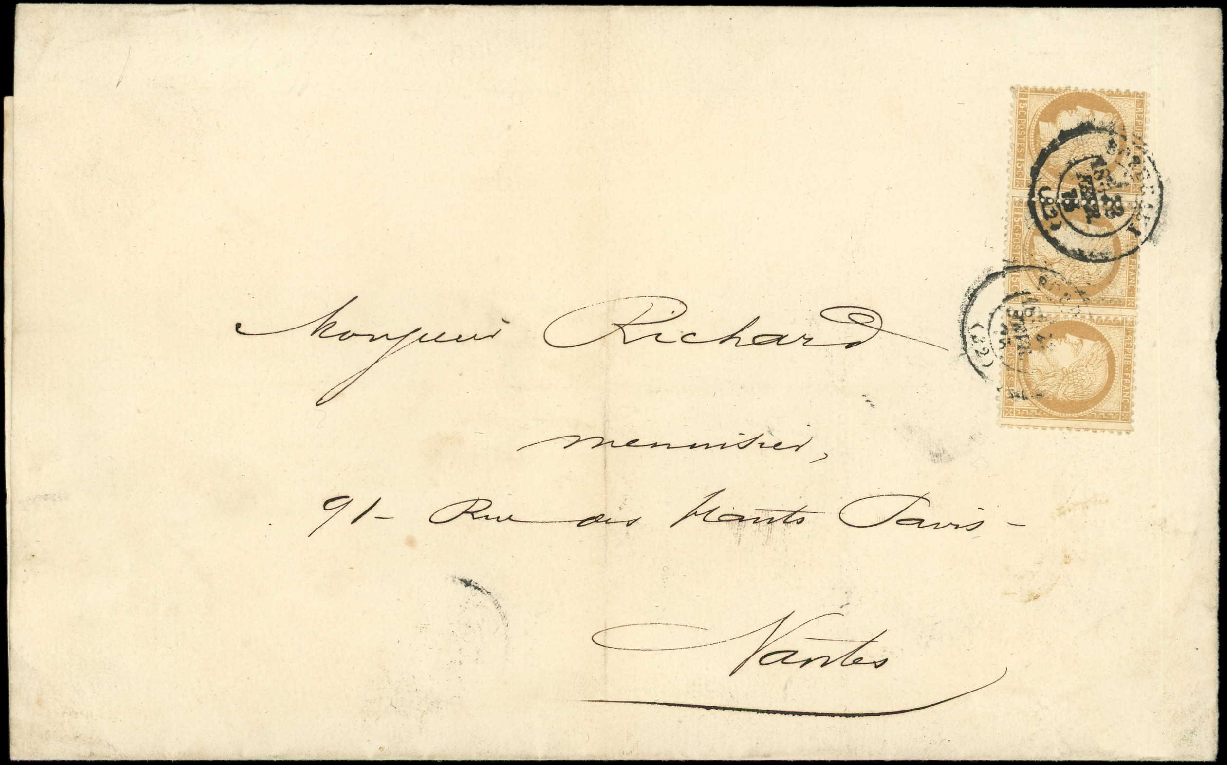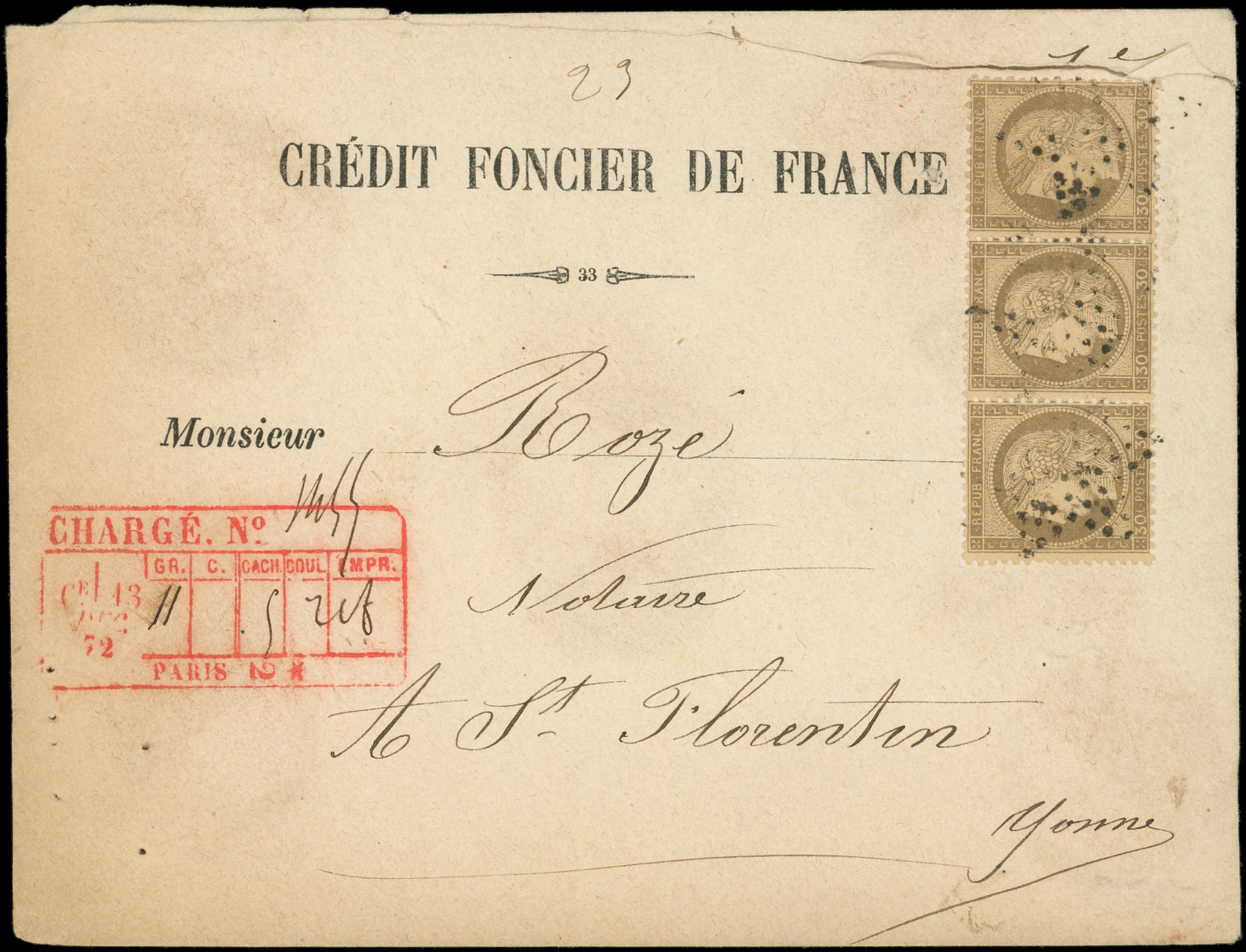 BANDE de 3 obl. ETOILE s. Env. CHARGE, collecteur PARIS 13/6/72 en rouge, TB (Image)
