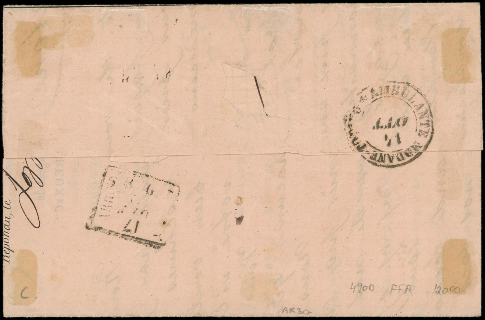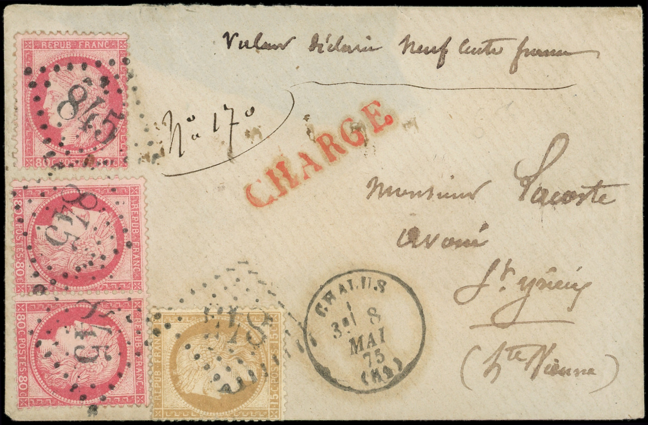 bistre et 80c. rose PAIRE + 1 ex., obl. GC 845 s. Env. CHARGE, càd T16 CHALUS 8/5/75, Superbe (Image)