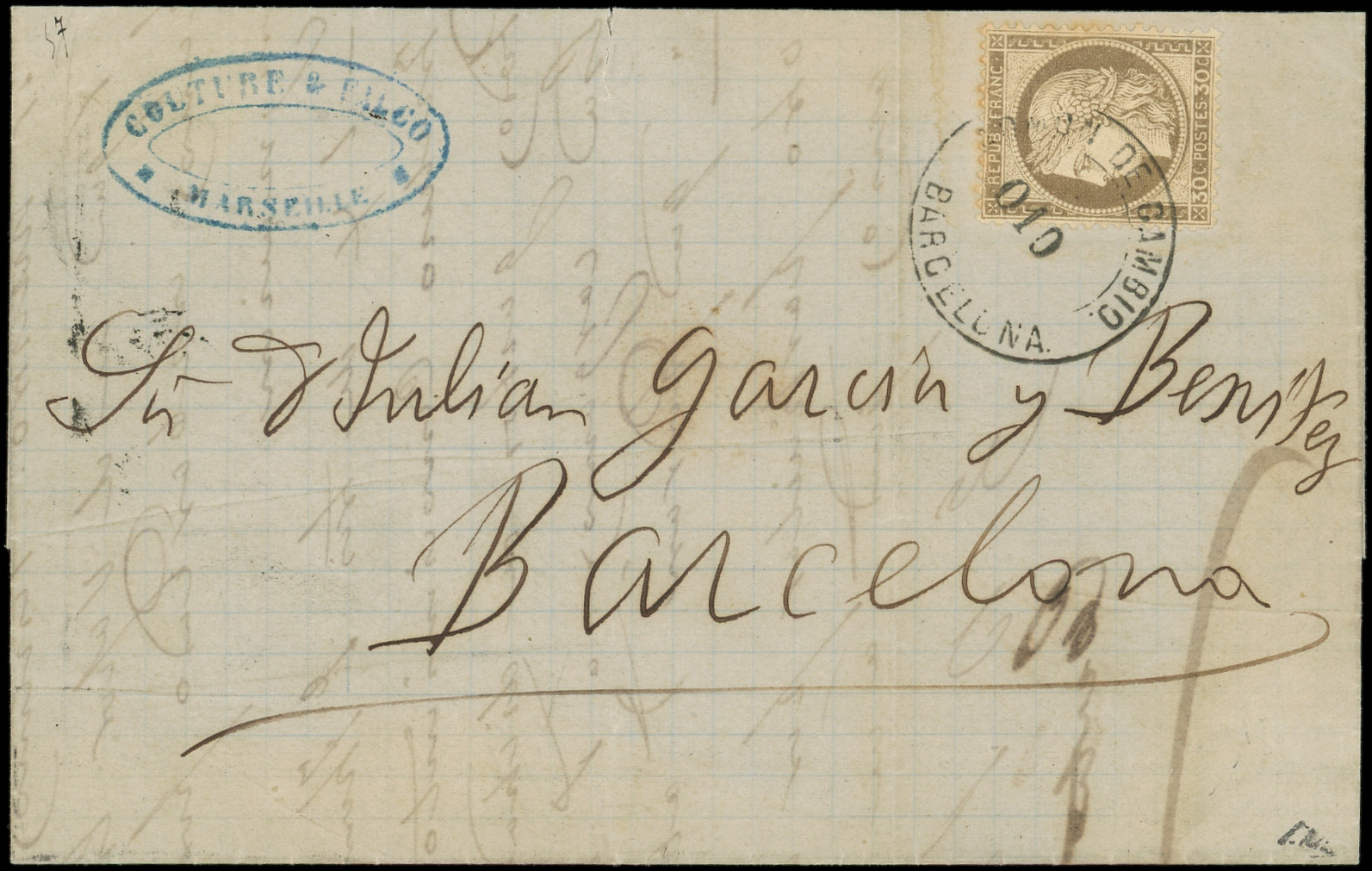 obl. cachet ADMON DE CAMBIO BARCELONA s. LAC de Marseille 9/7/76, obl. RR sur ce timbre, TTB (Image)
