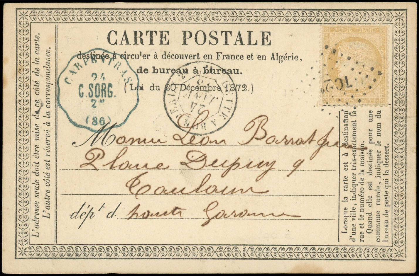obl. Amb. TC2e s. CP, càd CETTE A BORDEAUX 24/1/73 et Conv. CARPENTRAS C.SORG. en BLEU, TTB (Image) (Image2)
