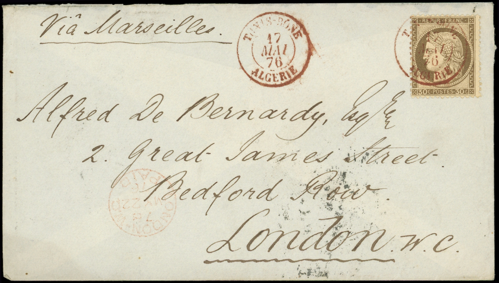 obl. càd TUNIS-BONE ALGERIE 17/5/76 en ROUGE et répété à côté s. Env., arr. LONDON 22/5, TTB (Image) (Image2)