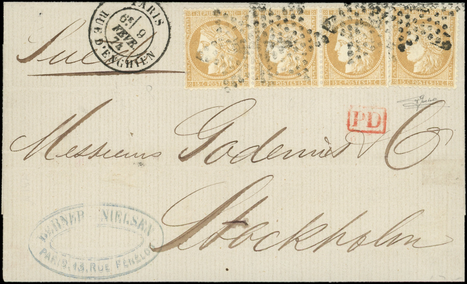 BANDE de 3 + 1 ex. obl. Etoile 4 s. LAC, càd Rue d'Enghien 9/2/74, pour STOCKHOLM, TTB (Image)