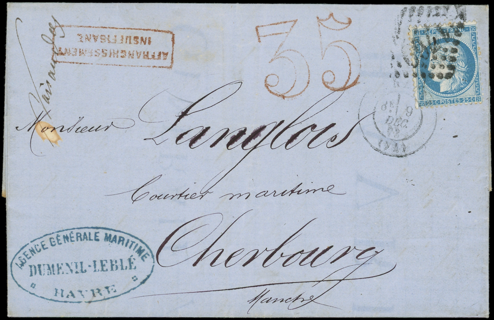 I, obl. GC 1769 s. LAC, càd T17 LE HAVRE 9/12/72, TAXE 35 DT en ROUGE, arr. CHERBOURG, RR ainsi, TB (Image) (Image2)