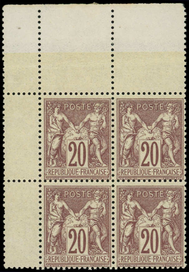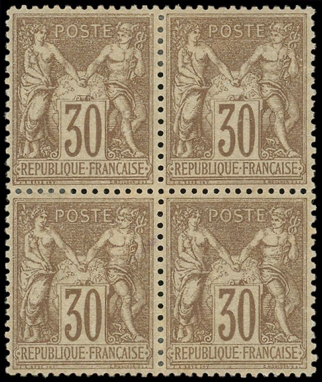 brun-lilas, nuance foncée, BLOC de 4 cdf, grande fraîcheur, TTB (Image)