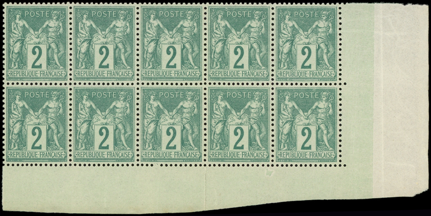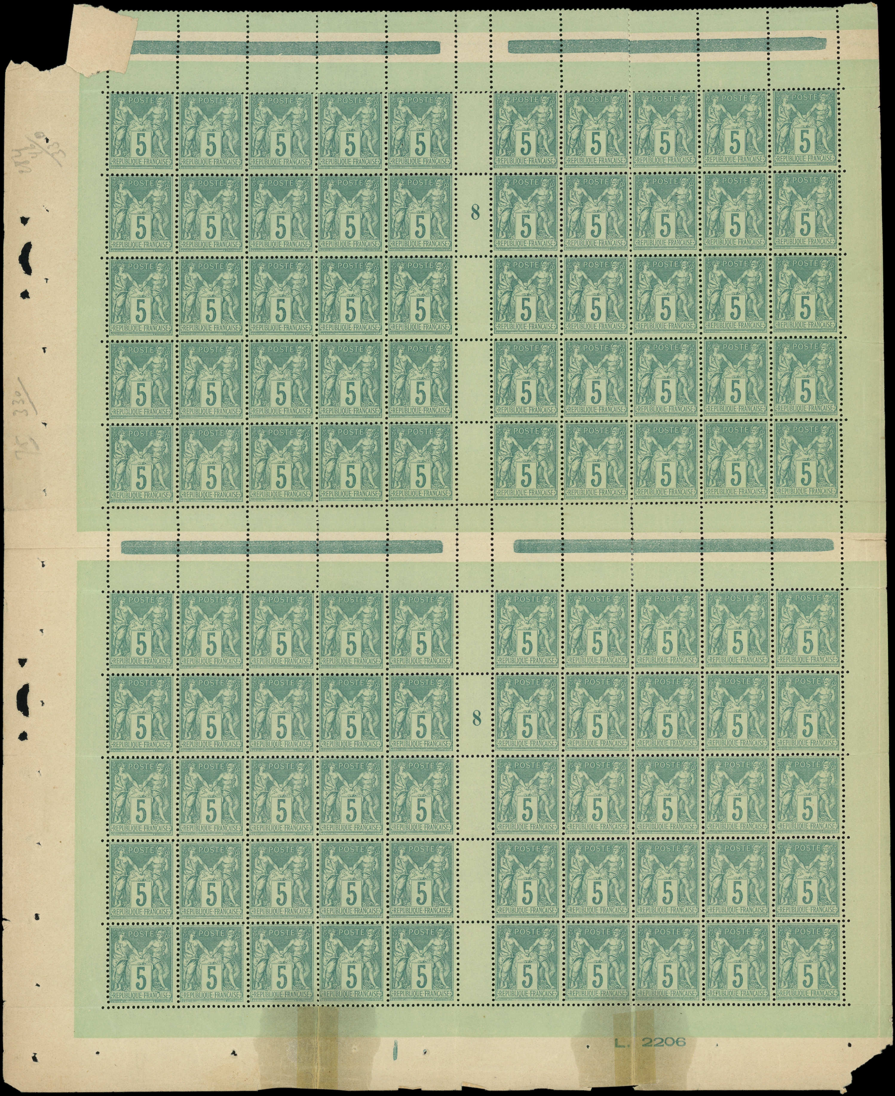 verdâtre, FEUILLE de 100, pliée au centre, qqs déf. sur les bords mais tous les t. TB (Image)