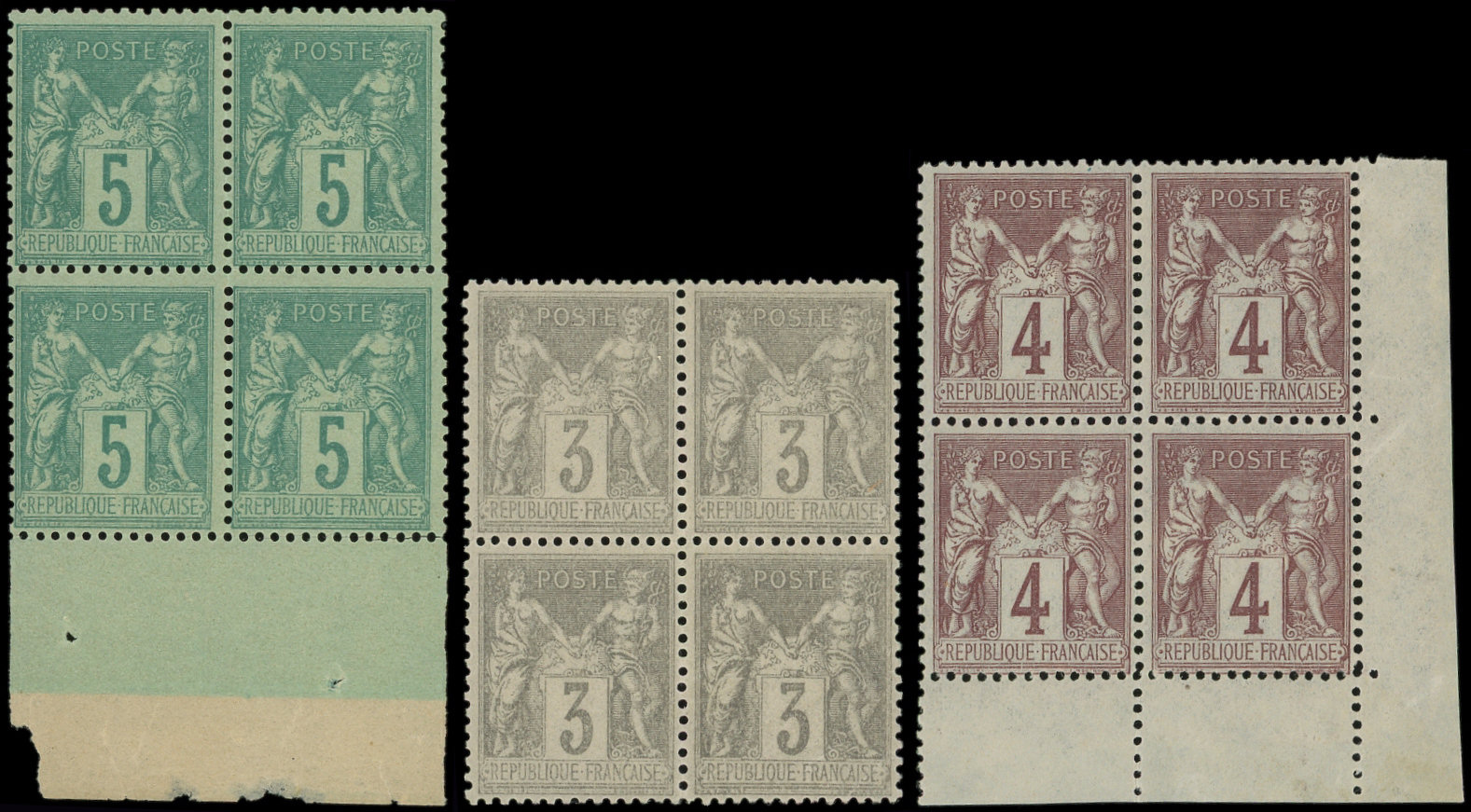 5c., 4c. et 3c. en BLOCS de 4, TB/TTB (Image)