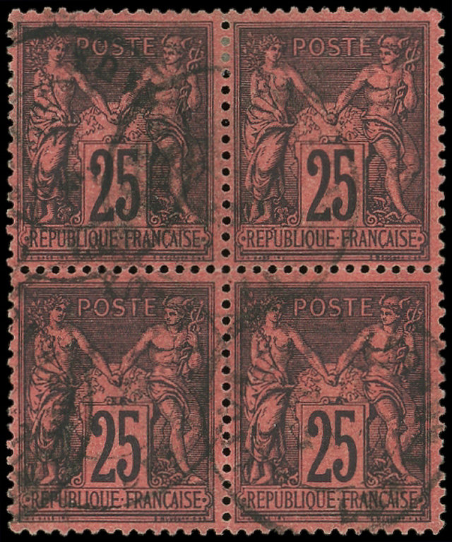 sur rouge, BLOC de 4 obl. càd, TB (Image)