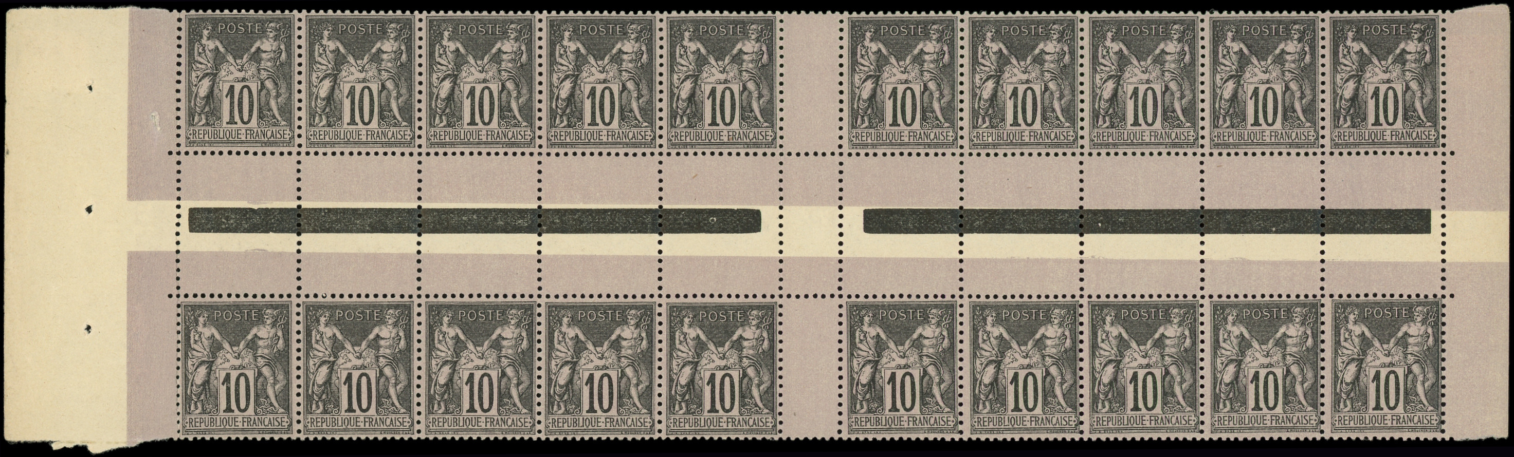 sur lilas, BLOC de 20 interp., T II tenant à T I N°103, TTB (Image)