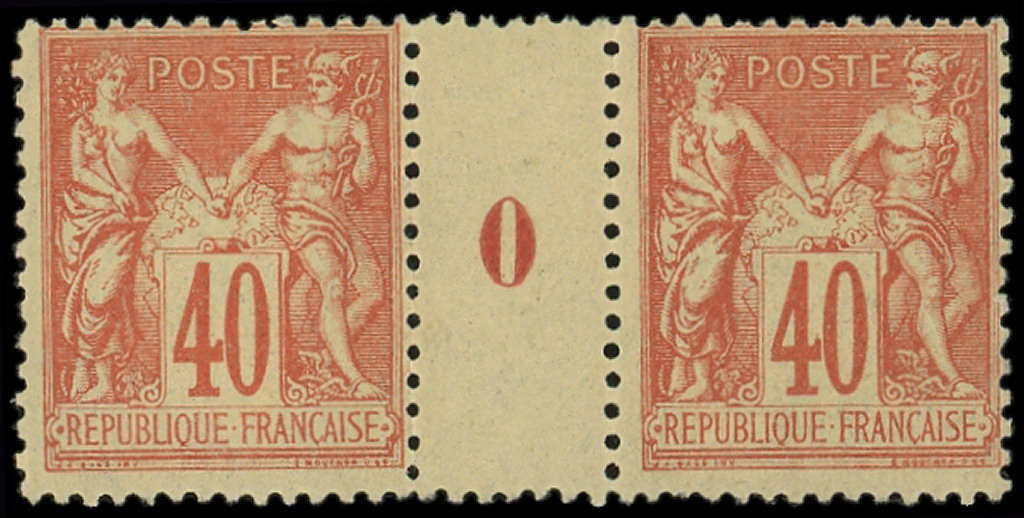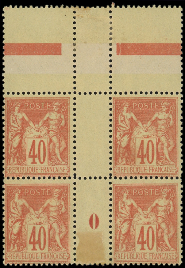 rouge-orange, BLOC de 4 Mill.0, bdf intergalvano, ch. au recto sur le Mill. et au verso sur bdf, TB, cote du bloc de 4 (Image)