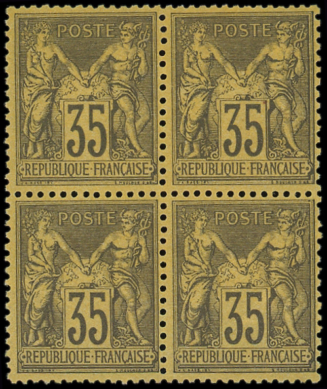 violet-noir sur jaune, BLOC de 4, la paire sup. * dont 1 t. inf. ch., très frais et TTB (Image)