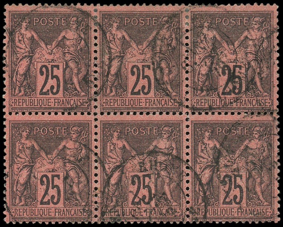 sur rouge, BLOC de 6 obl. càd, TB (Image)