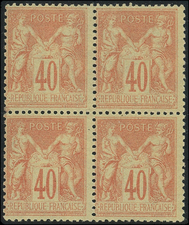 rouge-orange très clair, BLOC de 4, PAIRE sup. *, TB (Image)