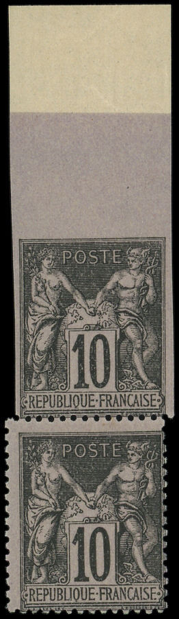 PAIRE verticale avec VARIETE absence partielle de GOMMAGE verticalement, 1 t. *, TB. J (Image)