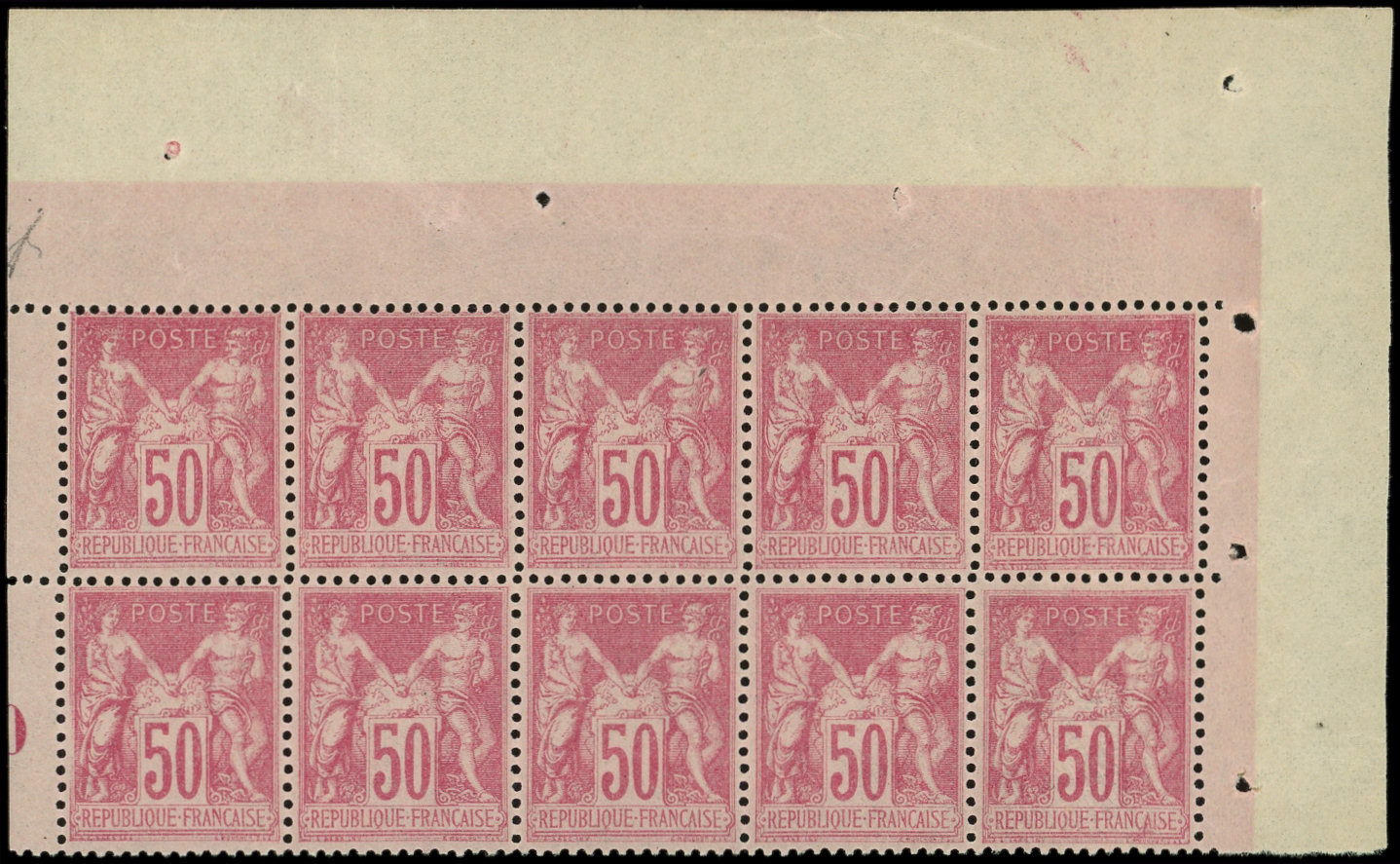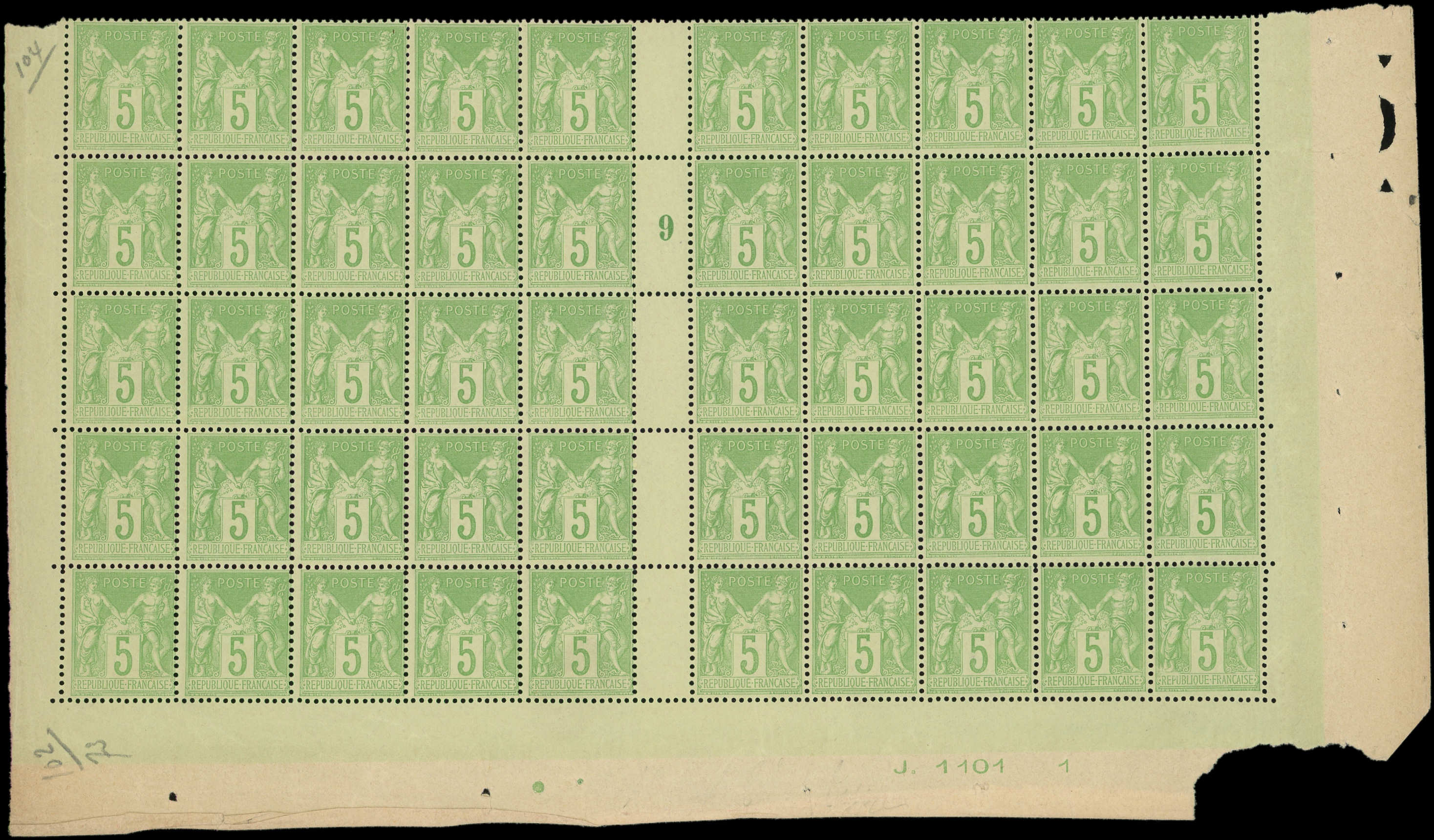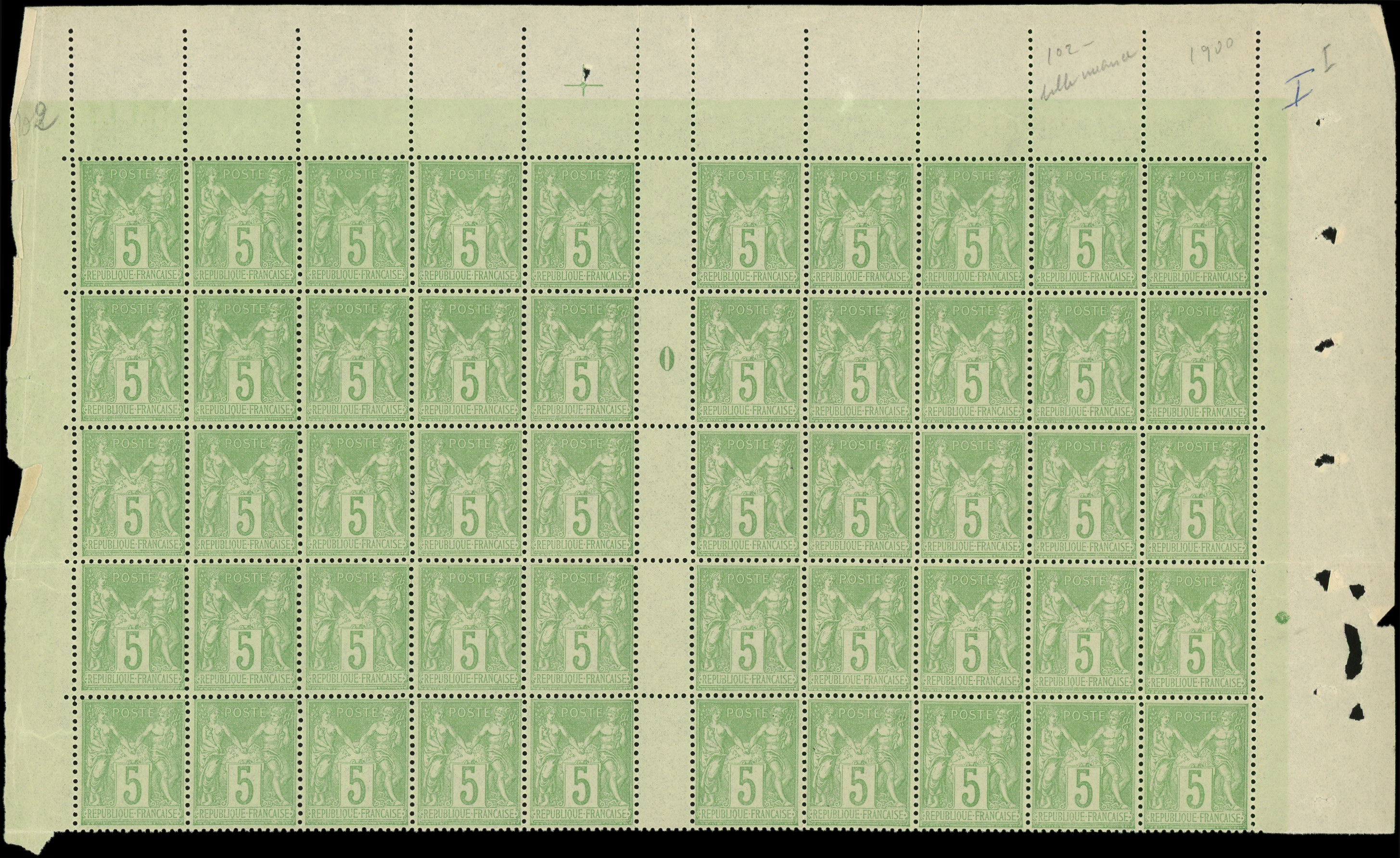 vert-jaune, PANNEAU de 50 bas de feuille Mill.9, très bon centrage d'ensemble, TB (Image)