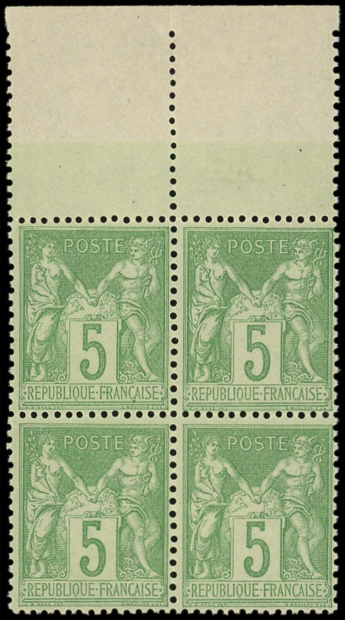vert-jaune, BLOC de 4 bdf, nuance foncée, TTB (Image)
