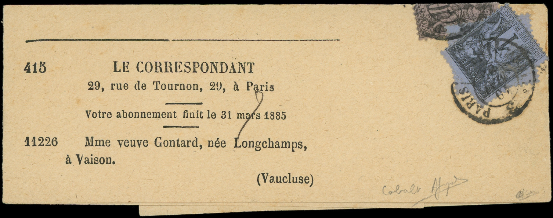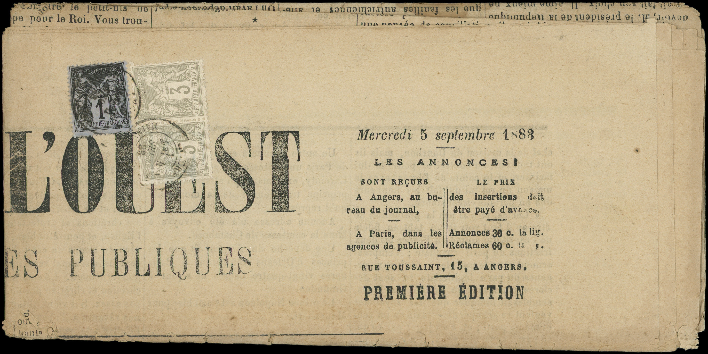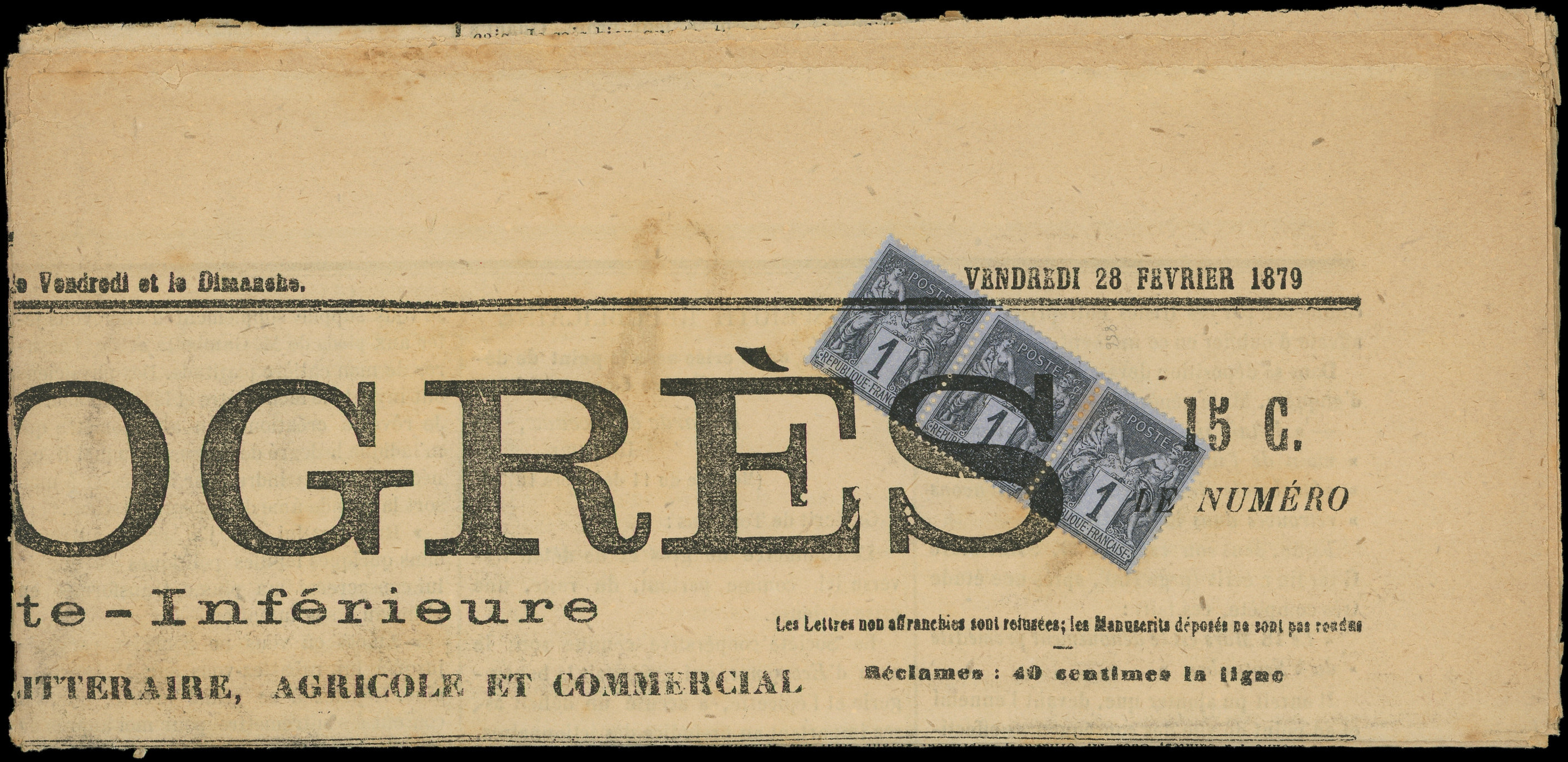 obl. TYPO s. Journal CHRONIQUE CHARENTAISE du 23/12/1877, TB, cote Cérès (Image)