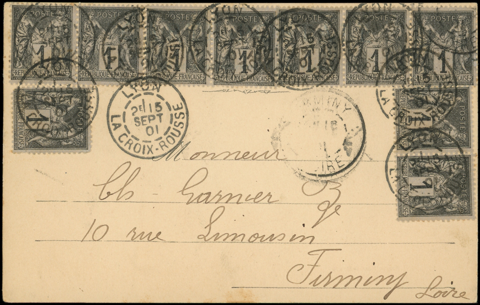 paire et unité (défse) obl. LYON 15/9/01 s. CP, TB (Image)