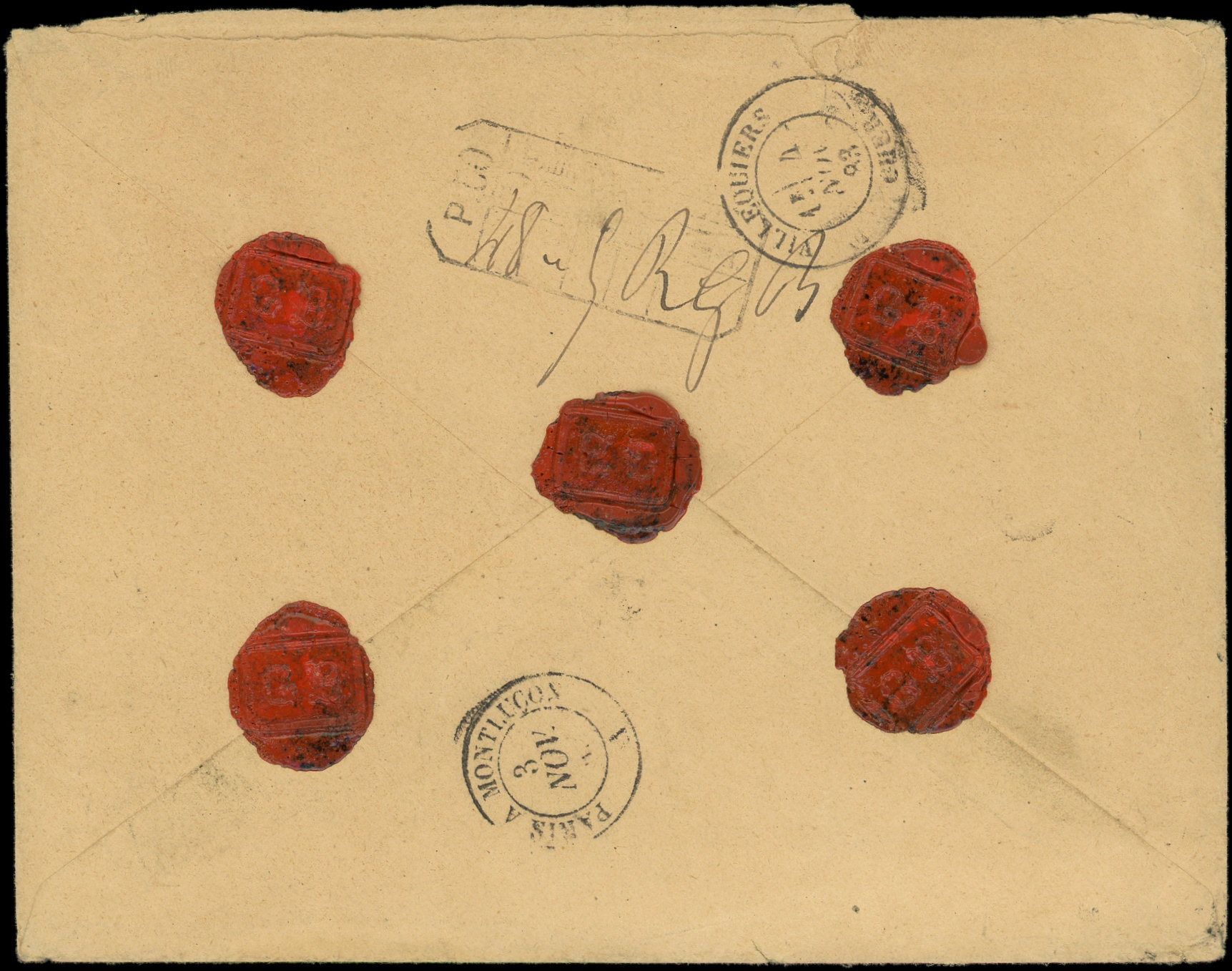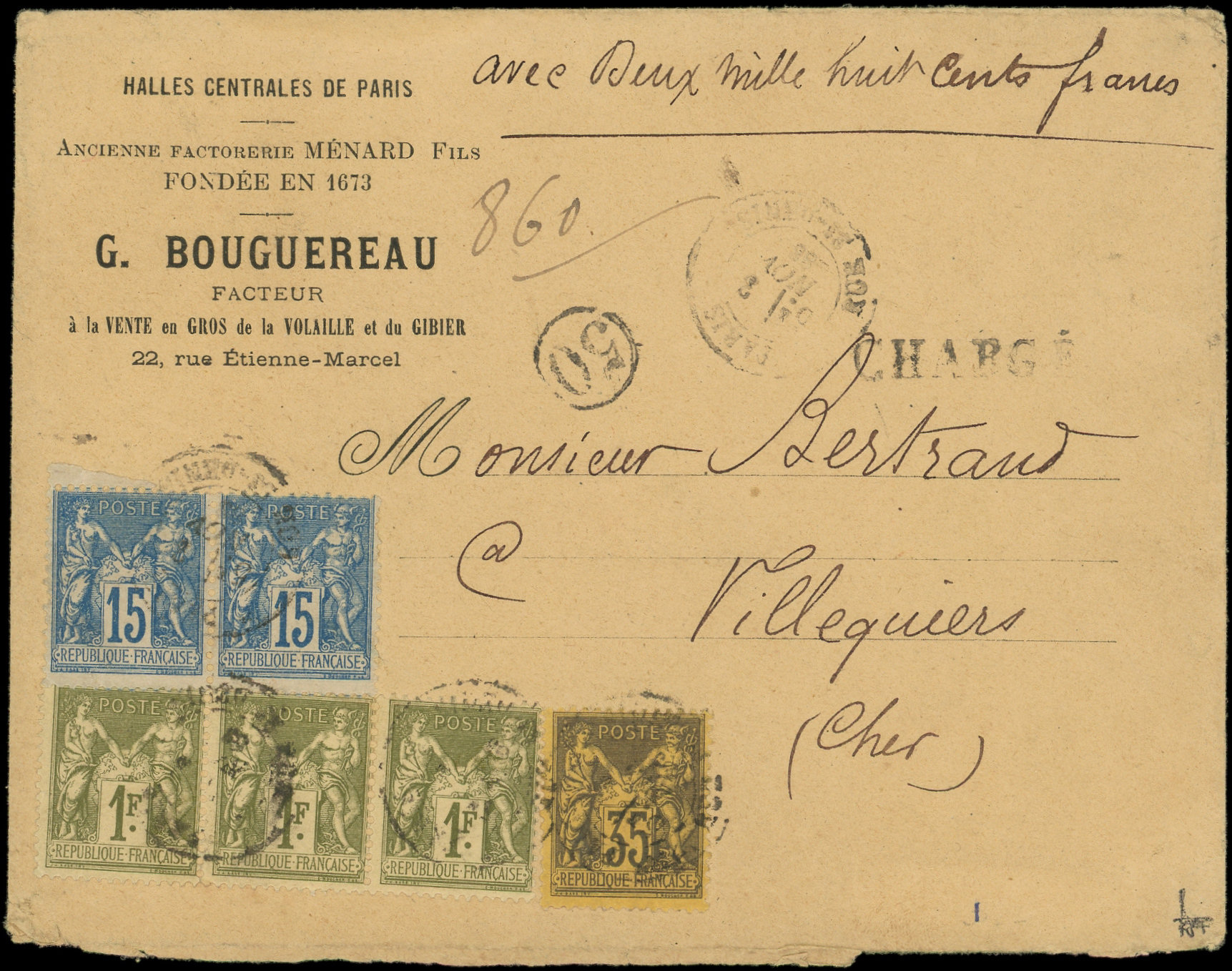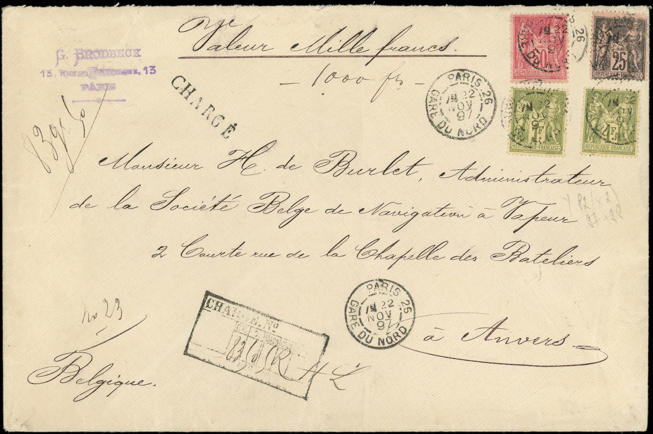 et 98 obl. PARIS 25/11/97 s. grande Env. CHARGE, descriptif au recto, arr. ANVERS, TB (Image)