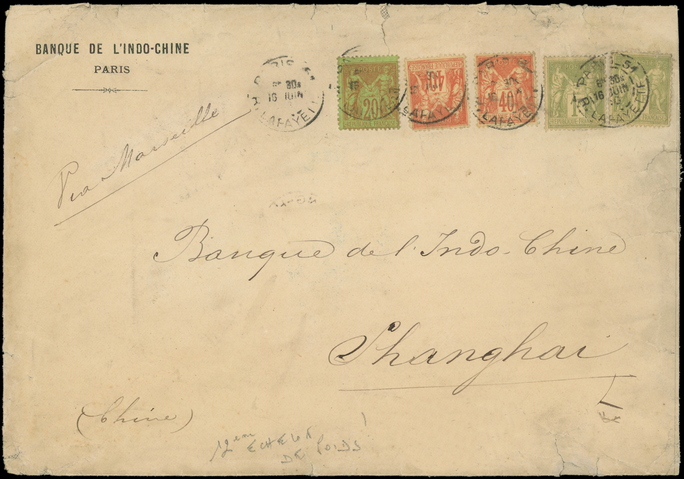et 96 obl. càd R. Lafayette 16/6/00 s. Env. un peu fatiguée, arr. SHANGHAI 18/7, 12e échelon de poids, TB (Image) (Image2)