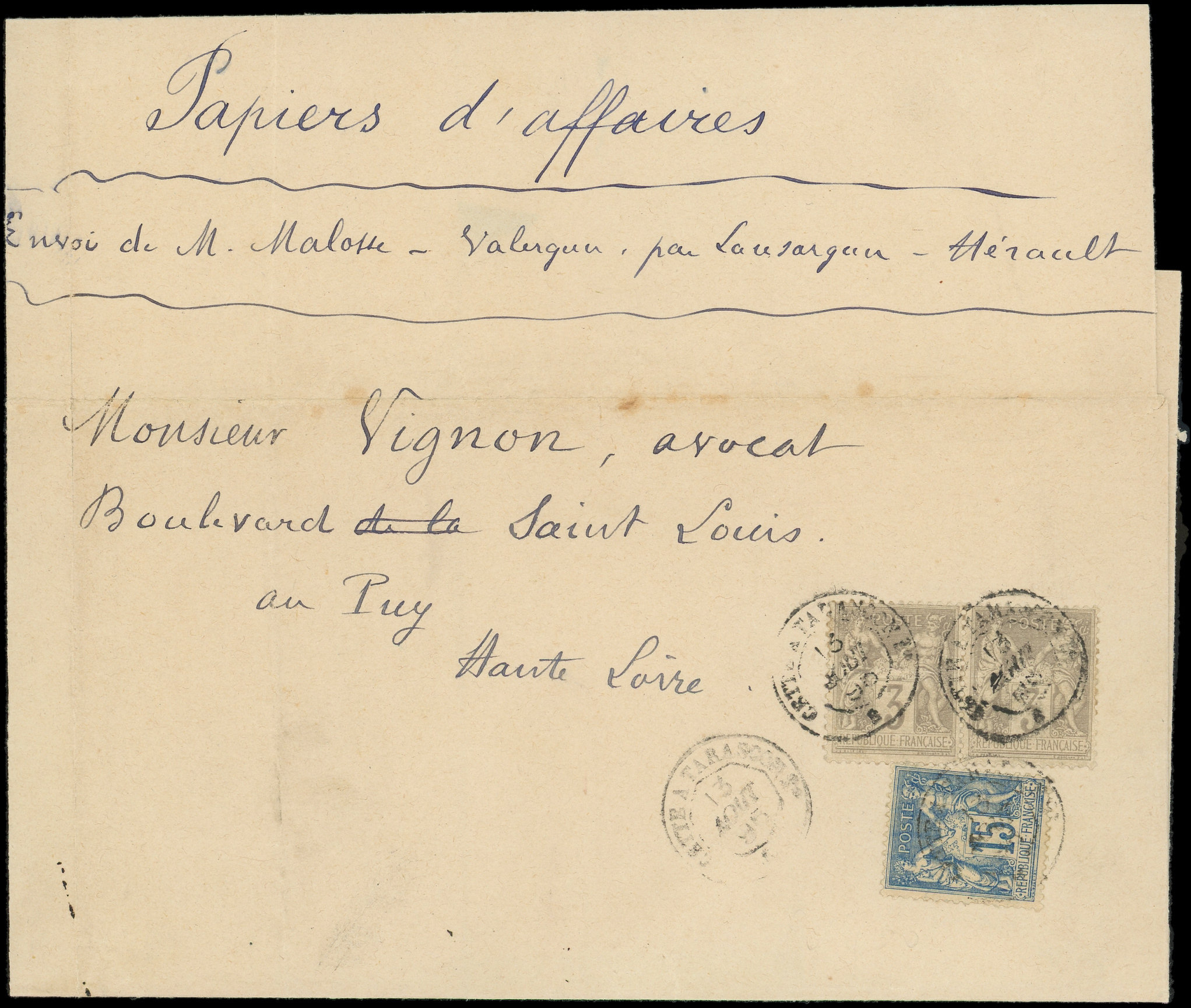 obl. càd CETTE A TARASCON 13/8/95 s. Papiers d'affaires au 4e échelon, affrt 21c. au lieu de 20, TB (Image)